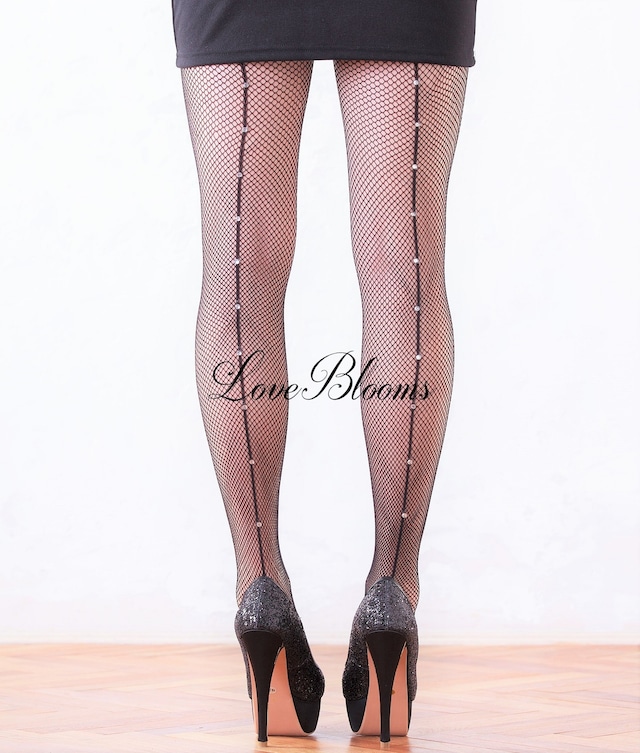 【送料無料】バックシーム ビジュー付き 網タイツ ストッキング 黒 レディース タイツ コスプレ LB32090