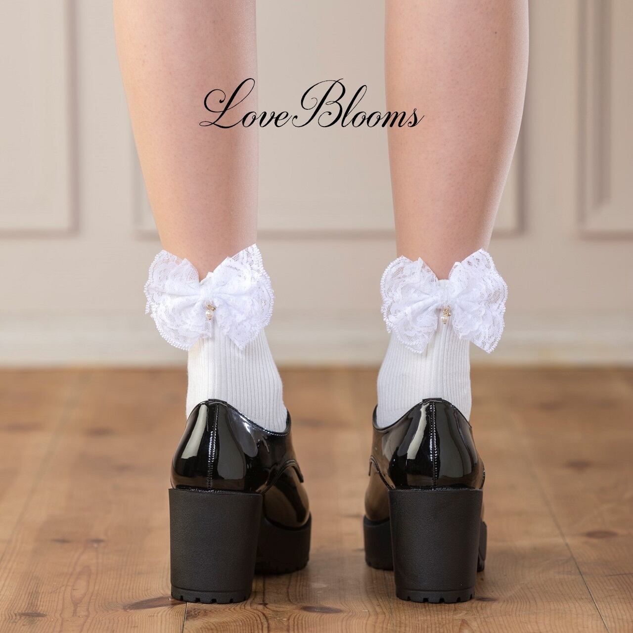 【送料無料】バック リボン フリルショートソックス レディース靴下 量産型 地雷系 ゆめかわいい ロリータ LB1003