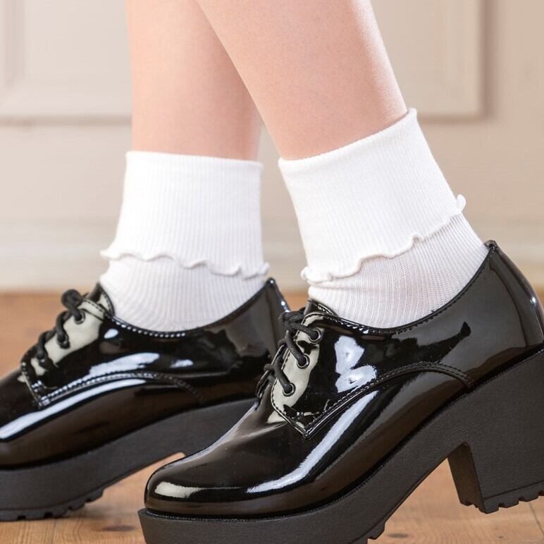 シンプルでどんなコーデにも合わせやすい定番無地の折返しフリルクルーソックスです!