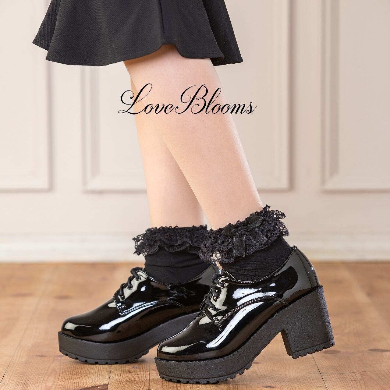 フリルレースのデザインが足元を華やかに演出し、リボンがアクセントになって可愛さを倍増させます。ロリータファッションや地雷系アイテムとの相性も抜群です。