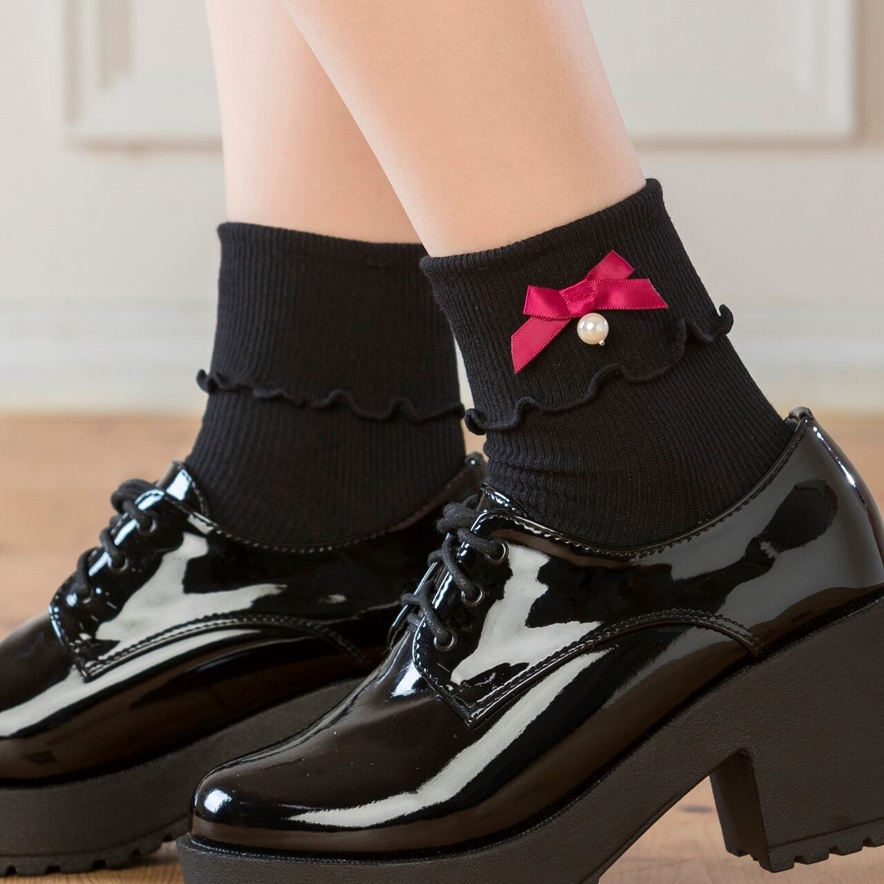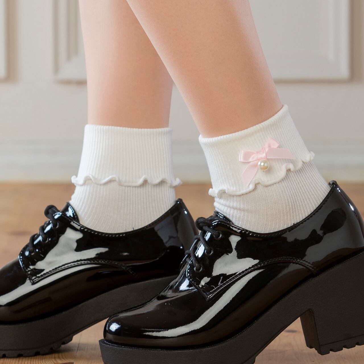 【送料無料】パール リボン 折返しソックス レディース靴下 量産型 地雷系 ゆめかわいい ロリータ LB23030