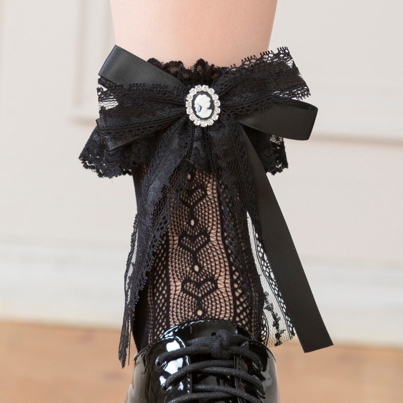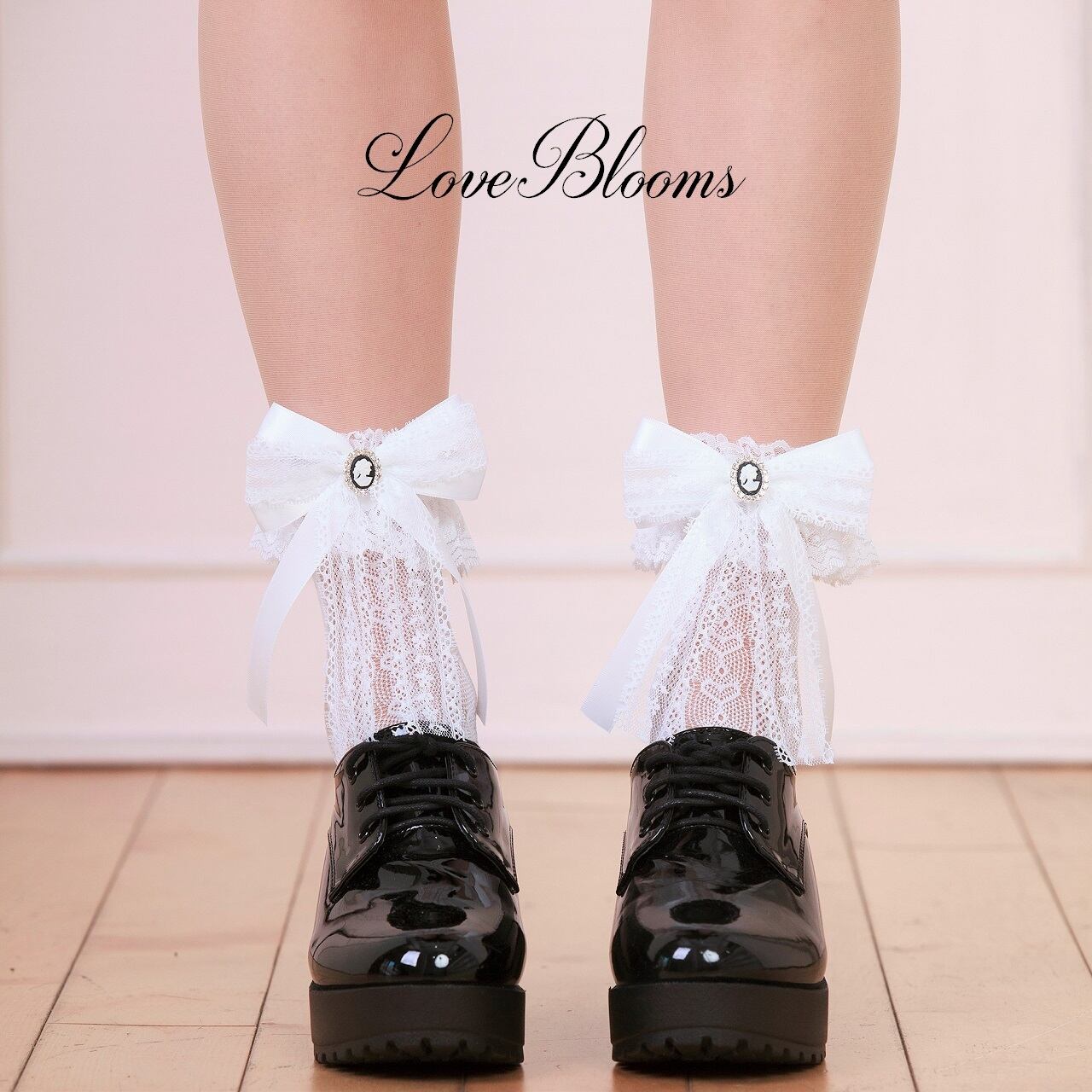 【送料無料】カメオ リボン付き ハート柄フリルレースソックス レディース靴下 量産型 地雷系 ゆめかわいい ロリータ LB12008