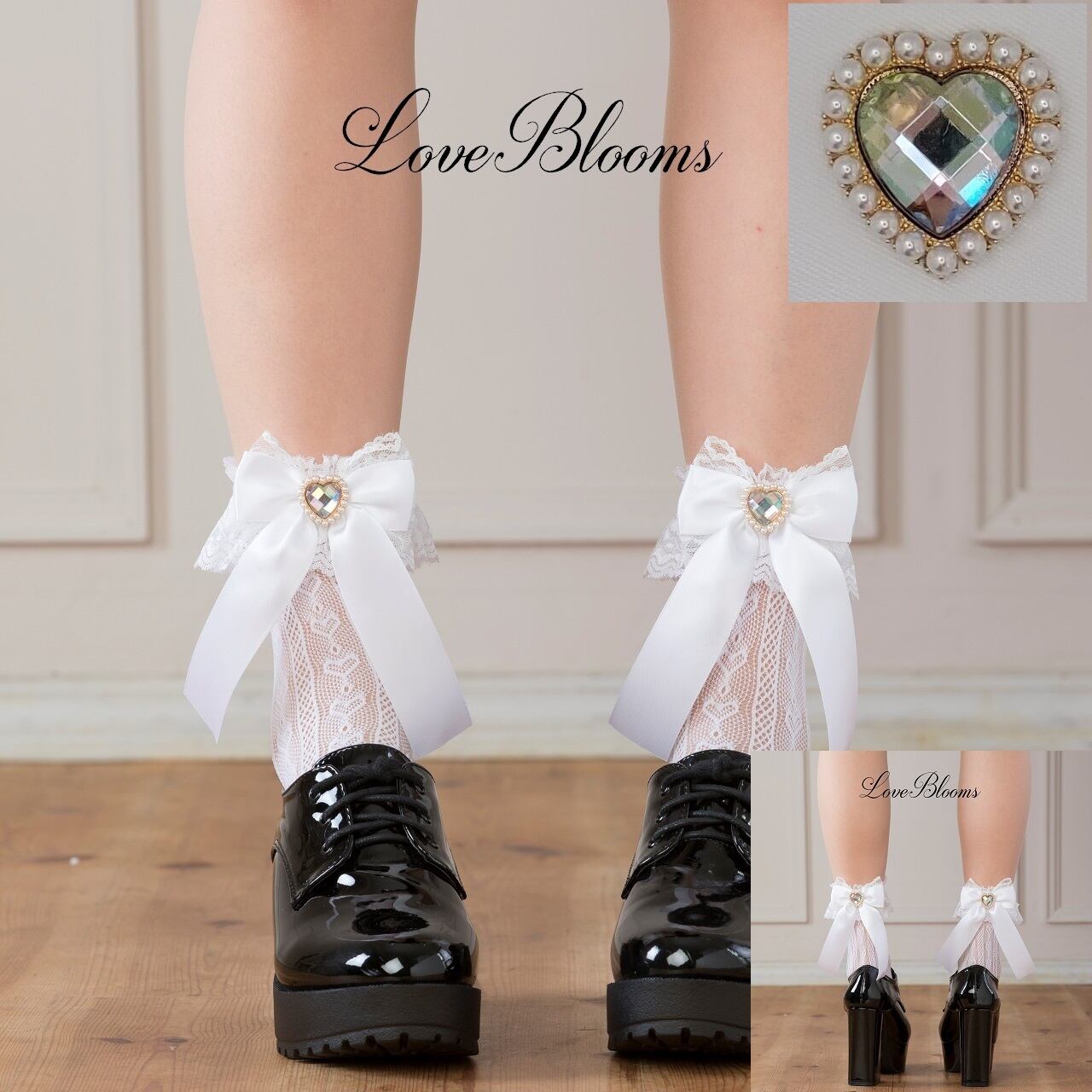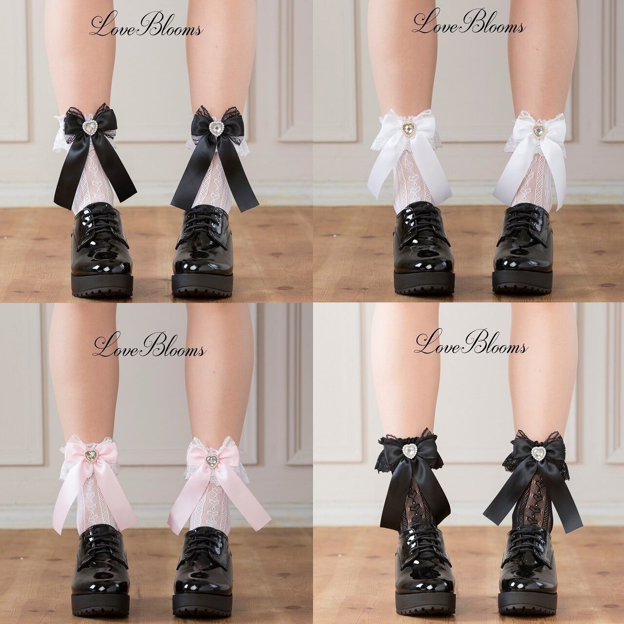 【送料無料】リボン ハート柄フリルレースソックスレディース靴下 量産型 地雷系 ゆめかわいい ロリータ LB12010