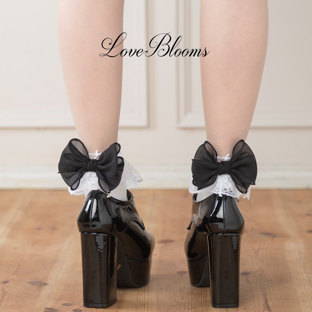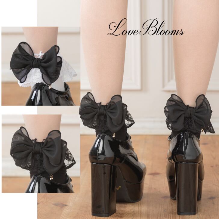 【送料無料】バックリボン付き フリルレース クルーソックス レディース靴下 量産型 地雷系 ゆめかわいい ロリータ LB17002