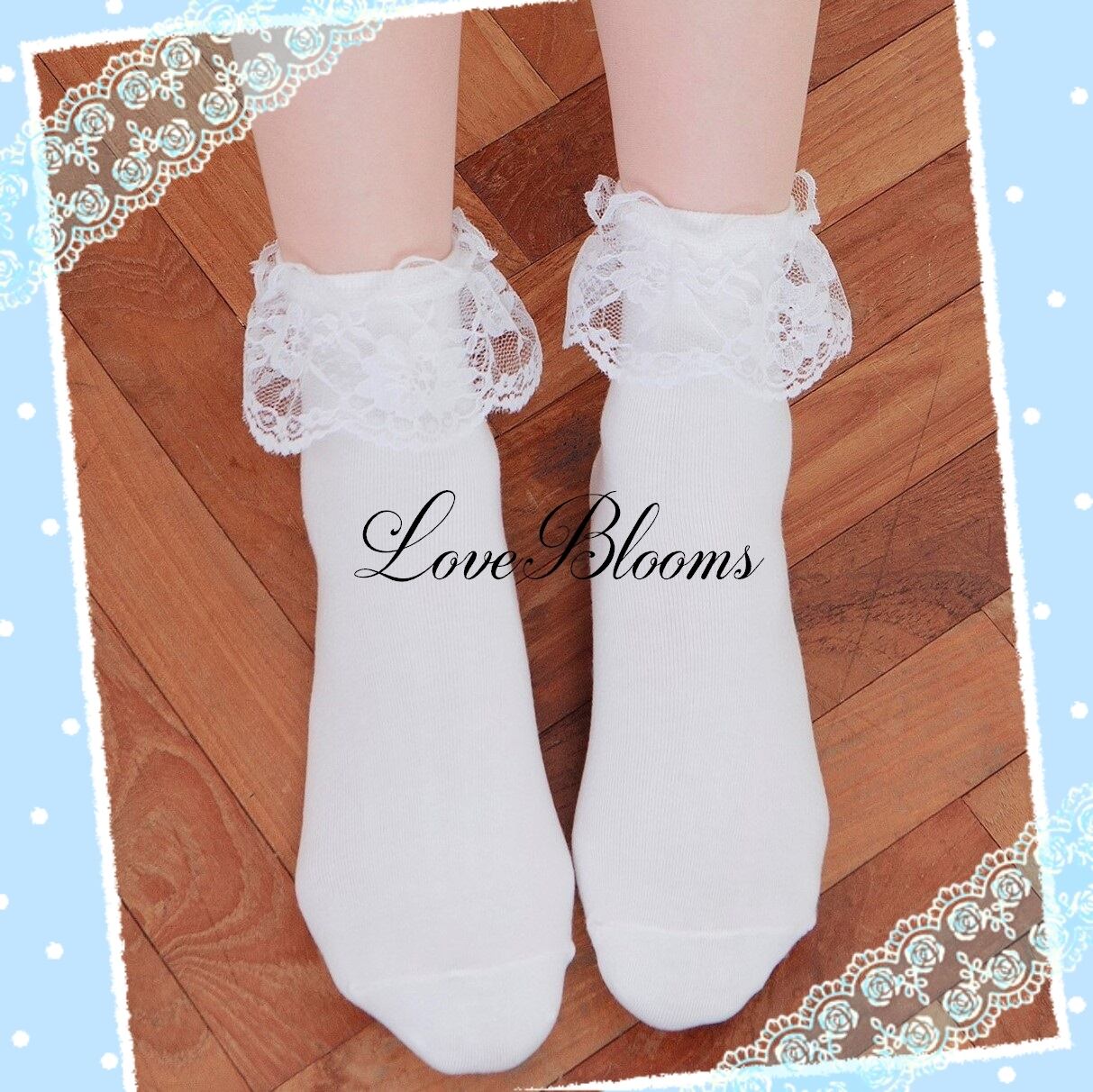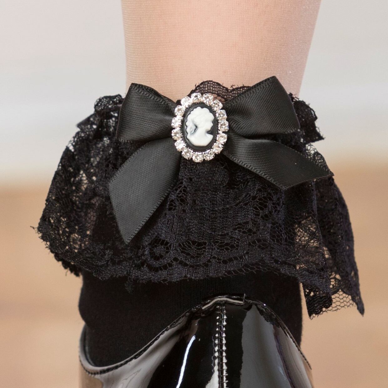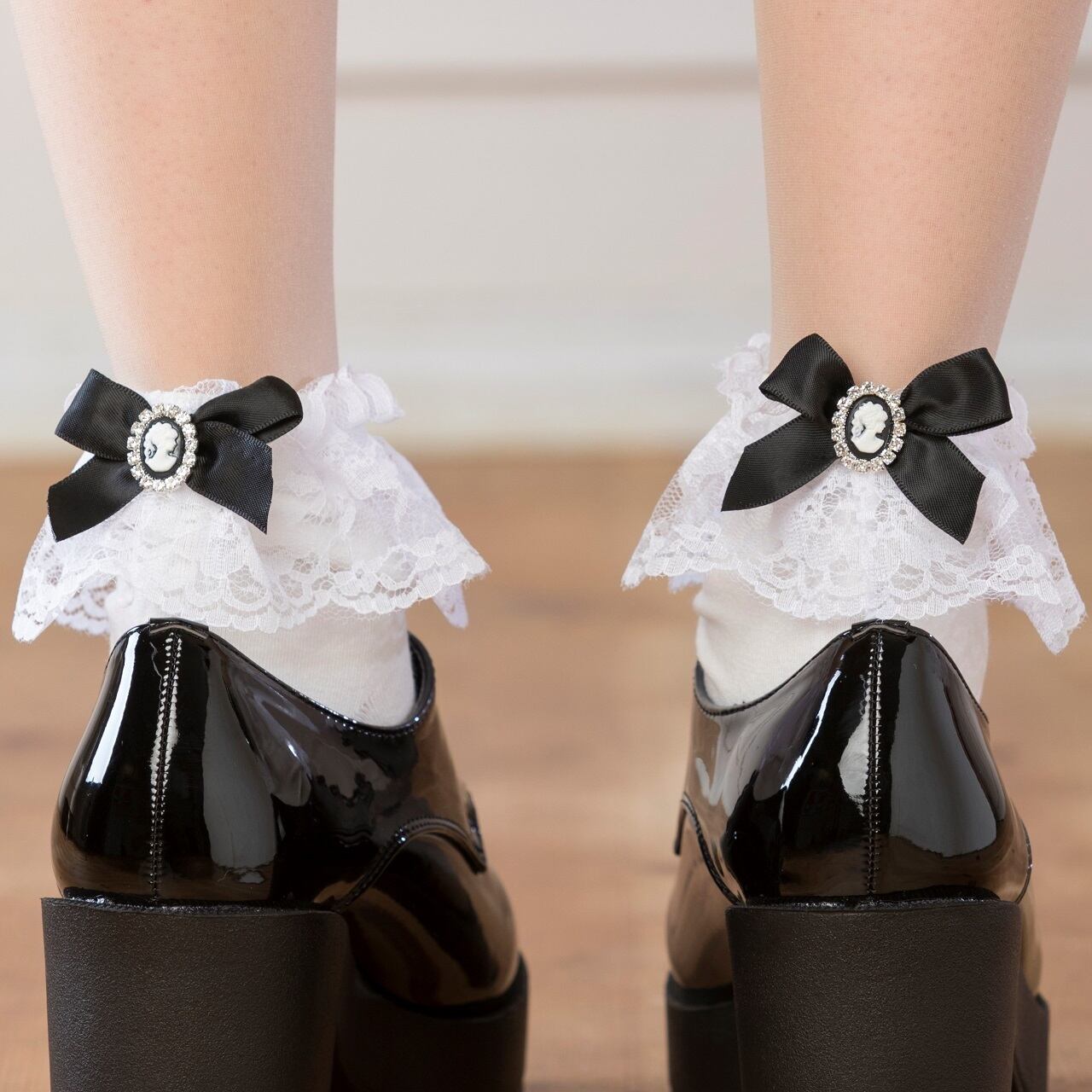 フリルレースにカメオリボンがついた存在感抜群でキュートさ満載のソックスです。