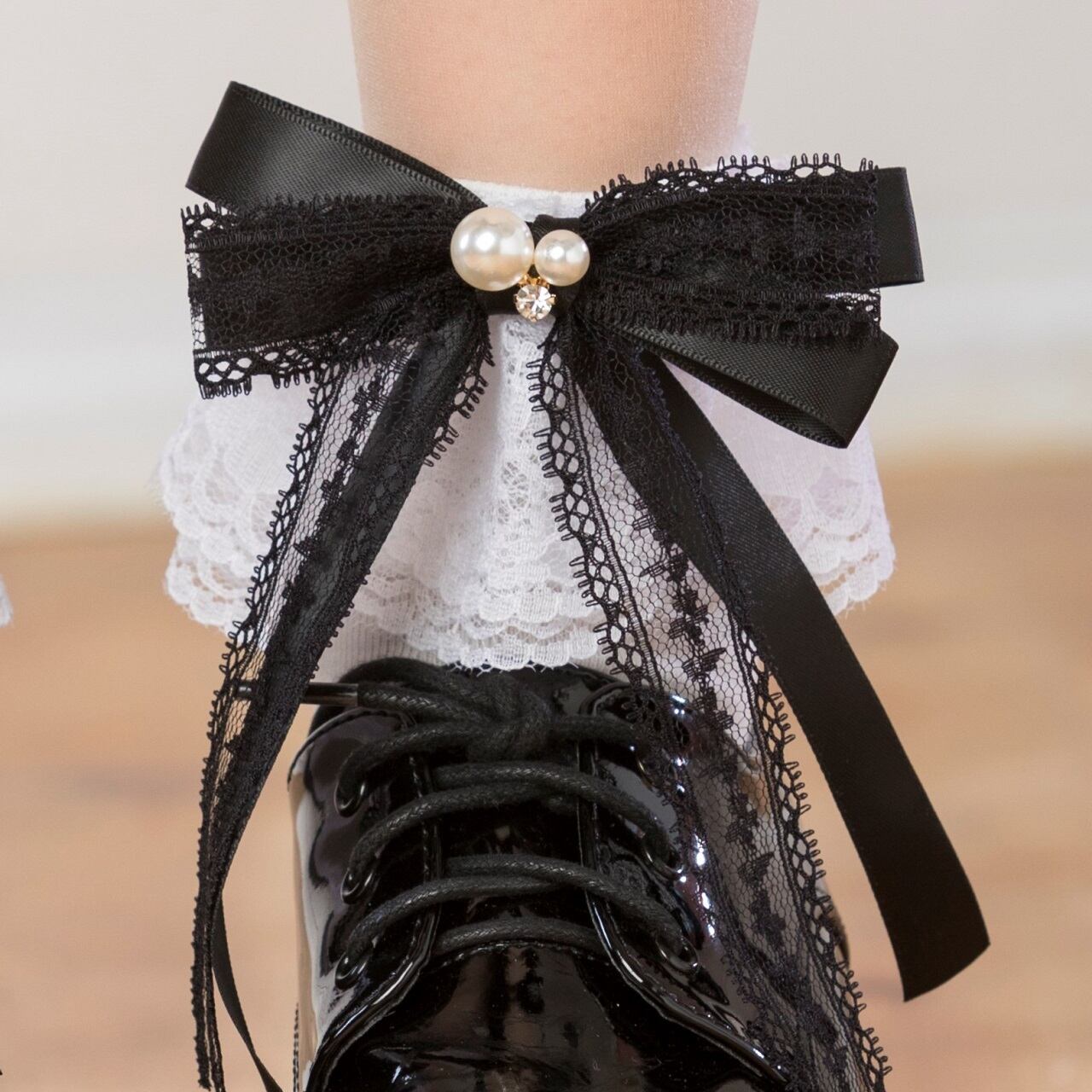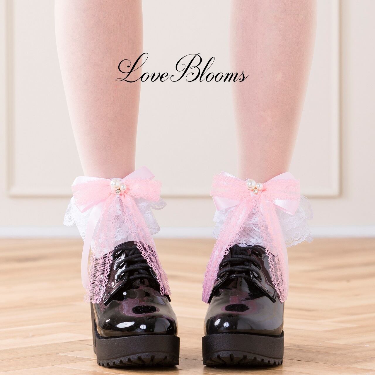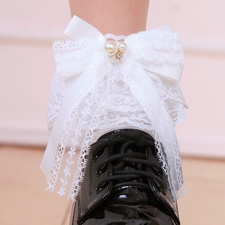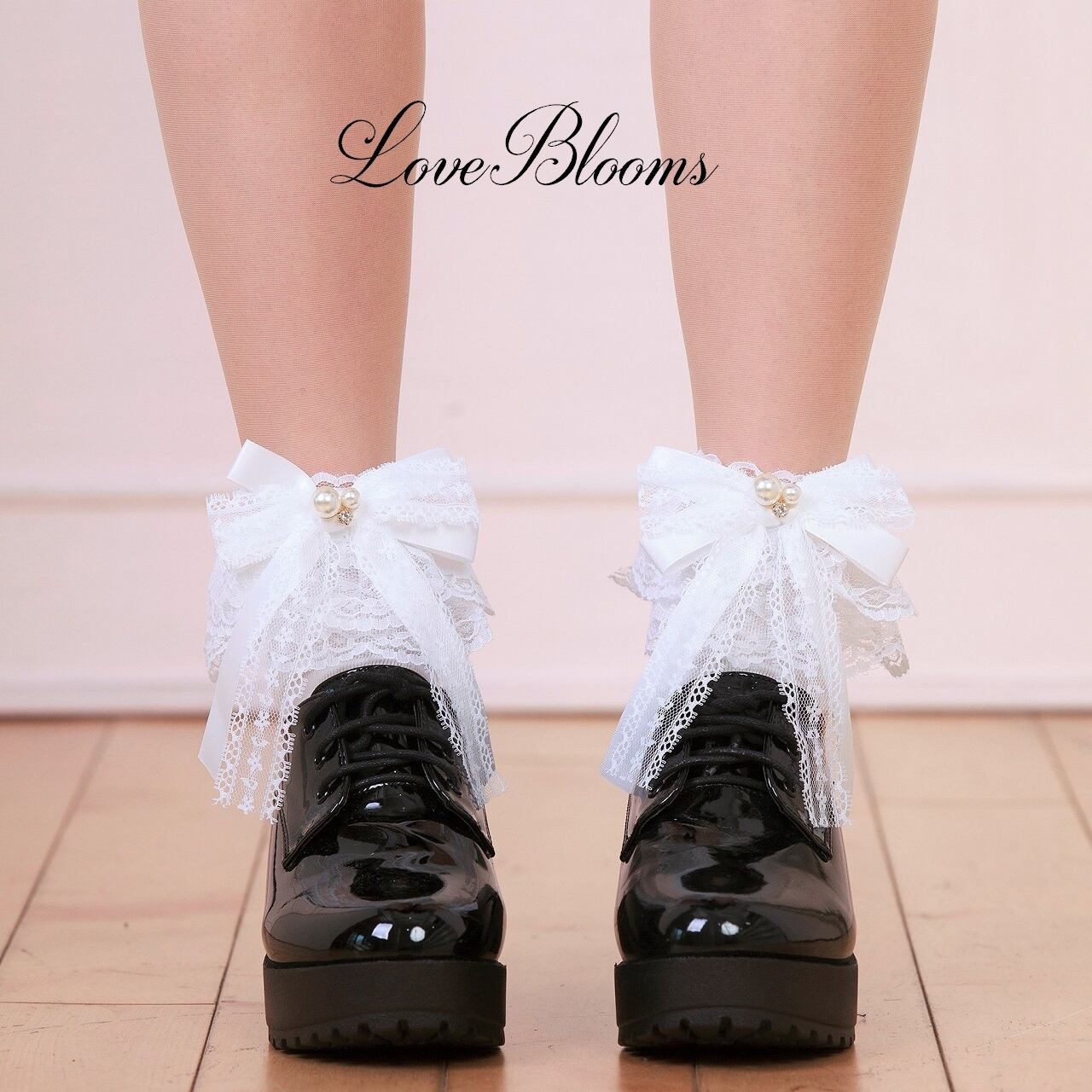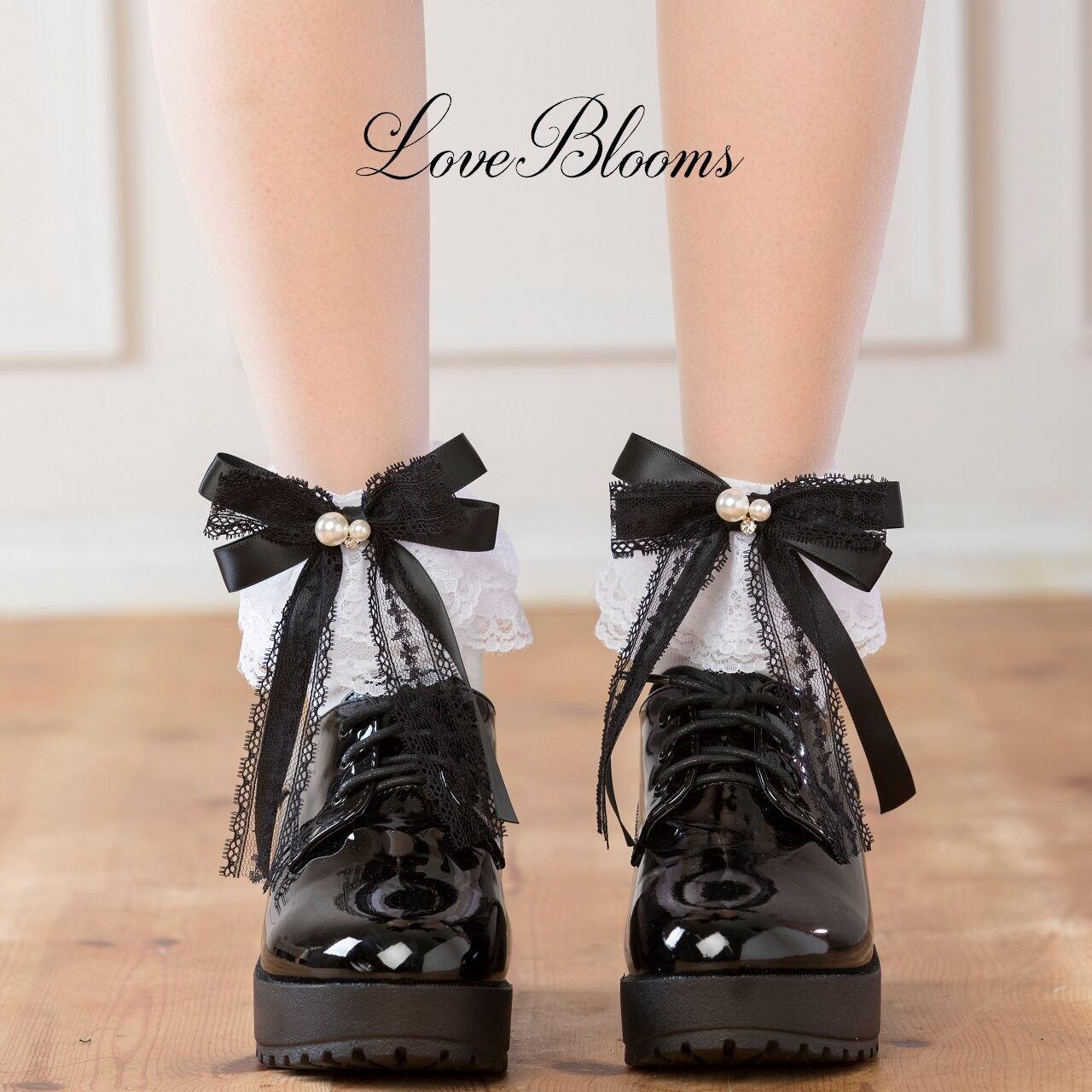 【送料無料】パールビジュー レースリボン付き フリルレースクルーソックス レディース靴下 量産型 地雷系 ゆめかわいい ロリータ LB17042