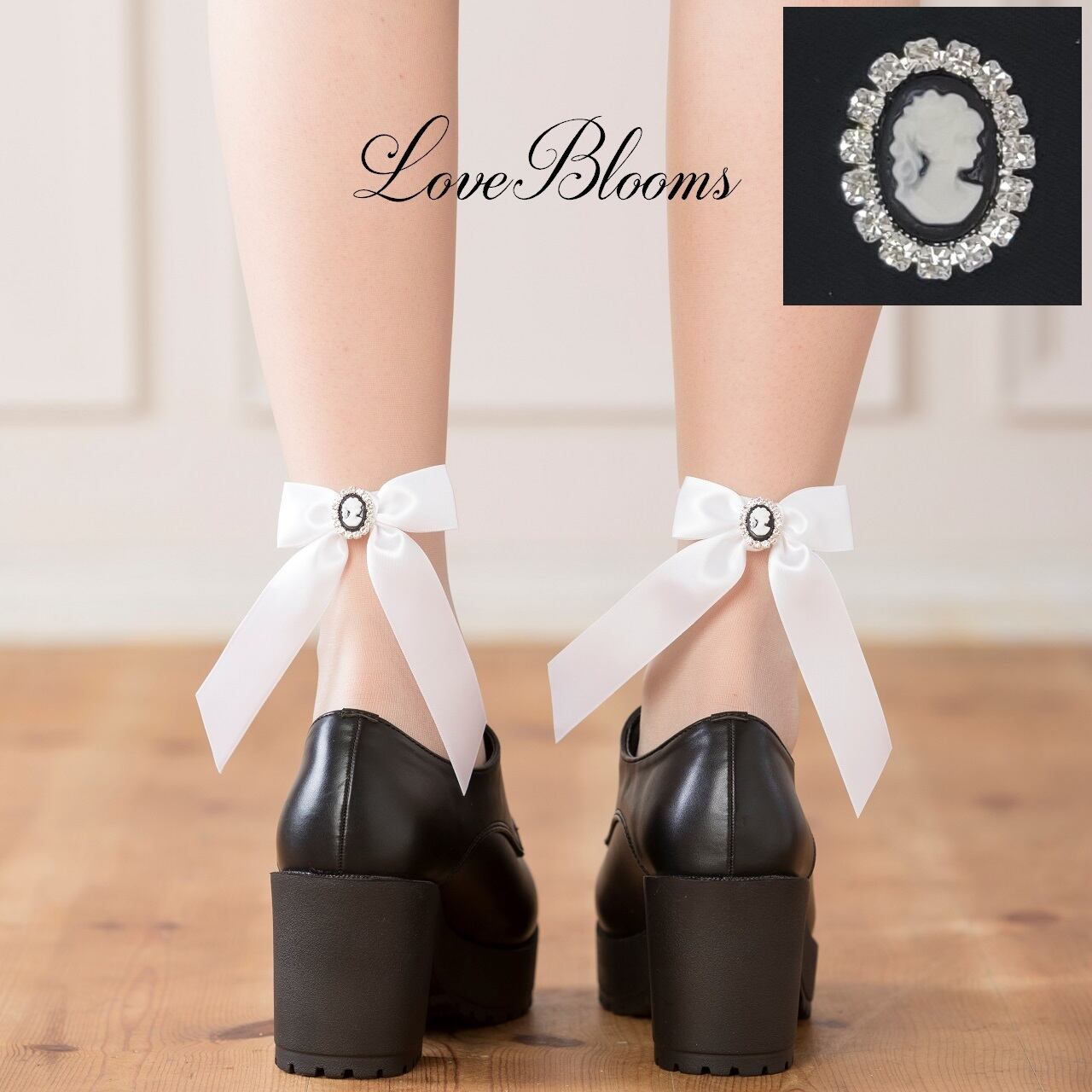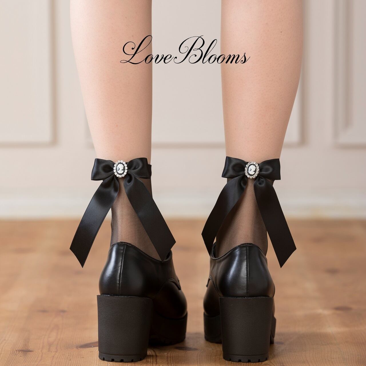 【送料無料】バックカメオリボン付き シースルー クルーソックス(日本製)レディース靴下 量産型 地雷系 ゆめかわいい ロリータ LB17050