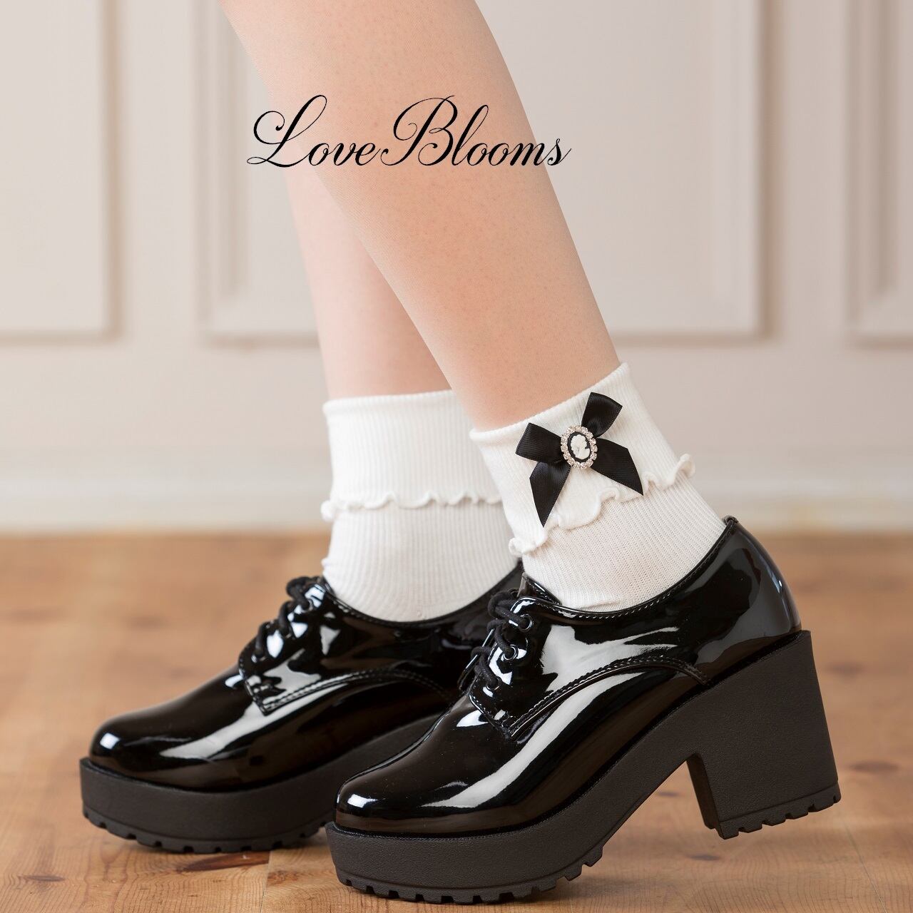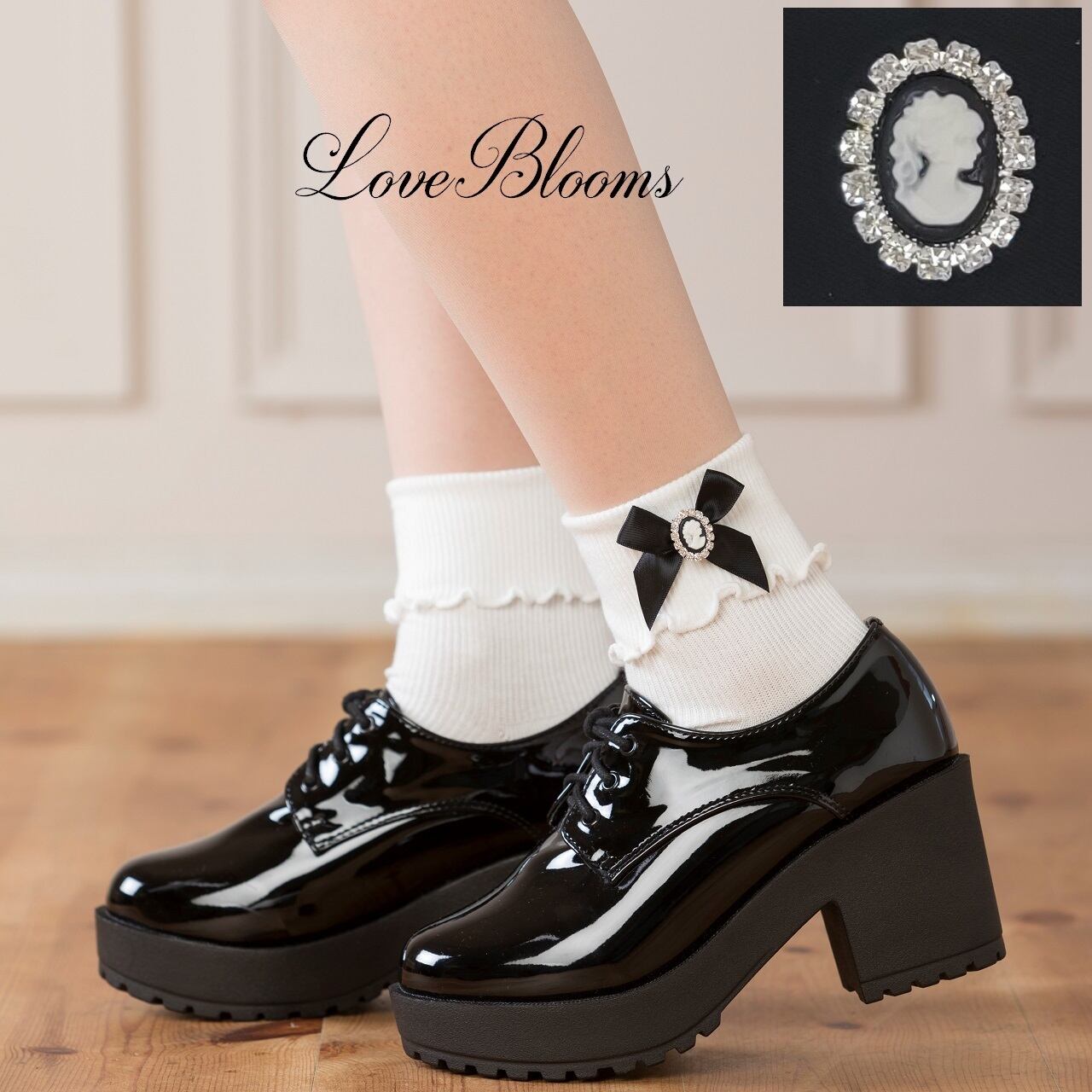 【送料無料】カメオリボン付き 折返しフリルクルーソックス レディース靴下 量産型 地雷系 ゆめかわいい ロリータ LB17073