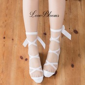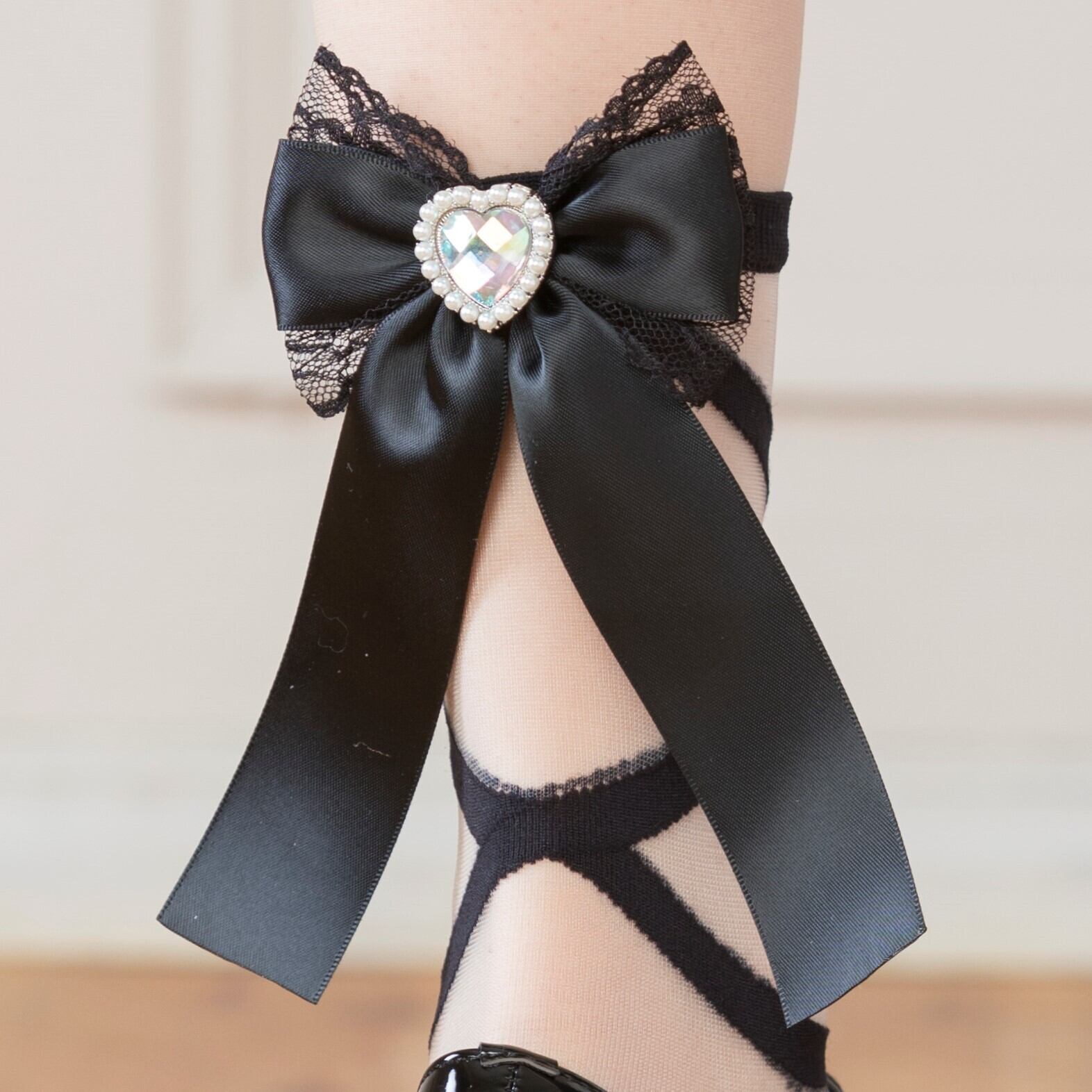 シースルーのレースアップの後ろにキラキラパールハートビジューサテンレースリボンが付いた履くだけで可愛さUPのアイテムです!