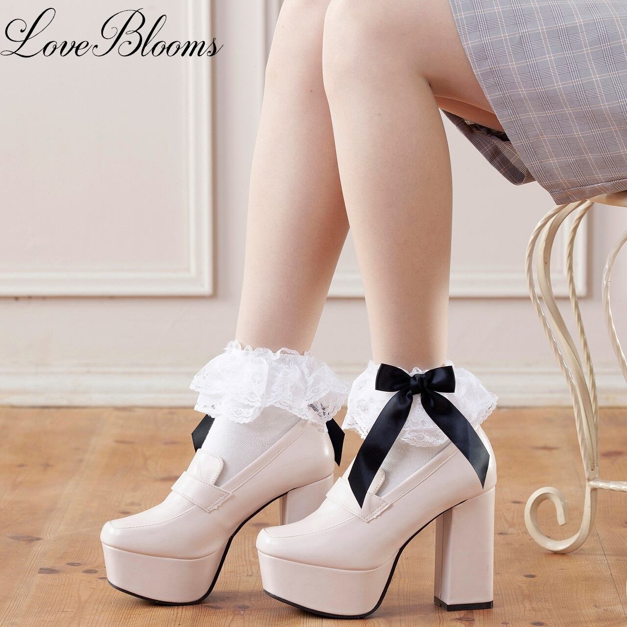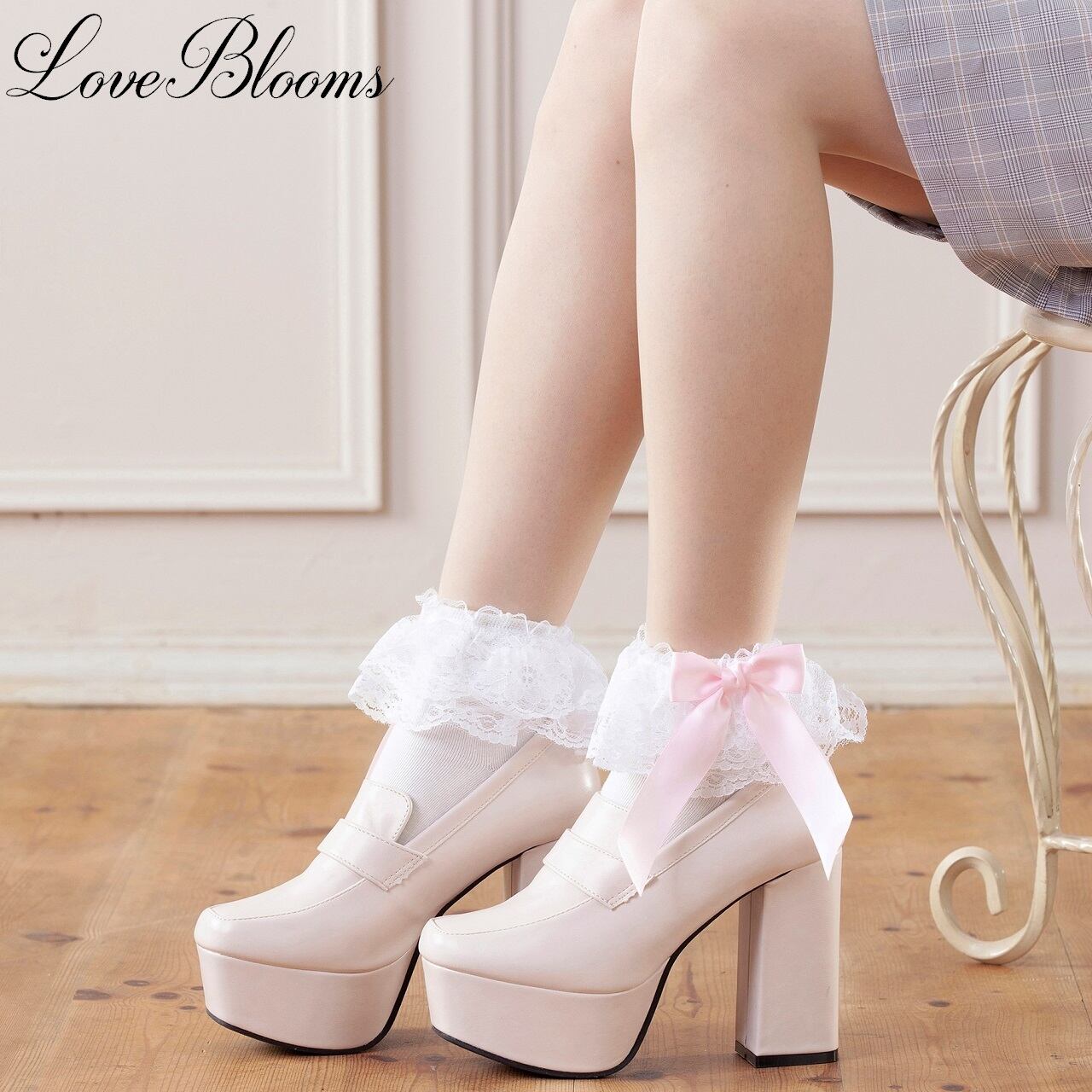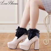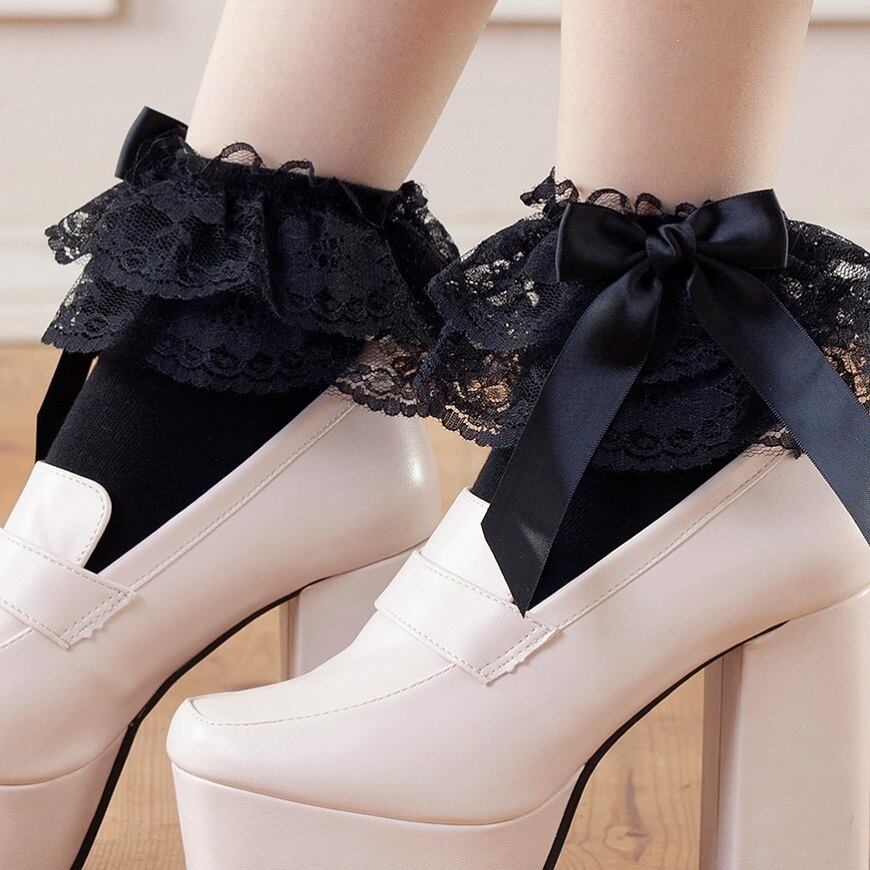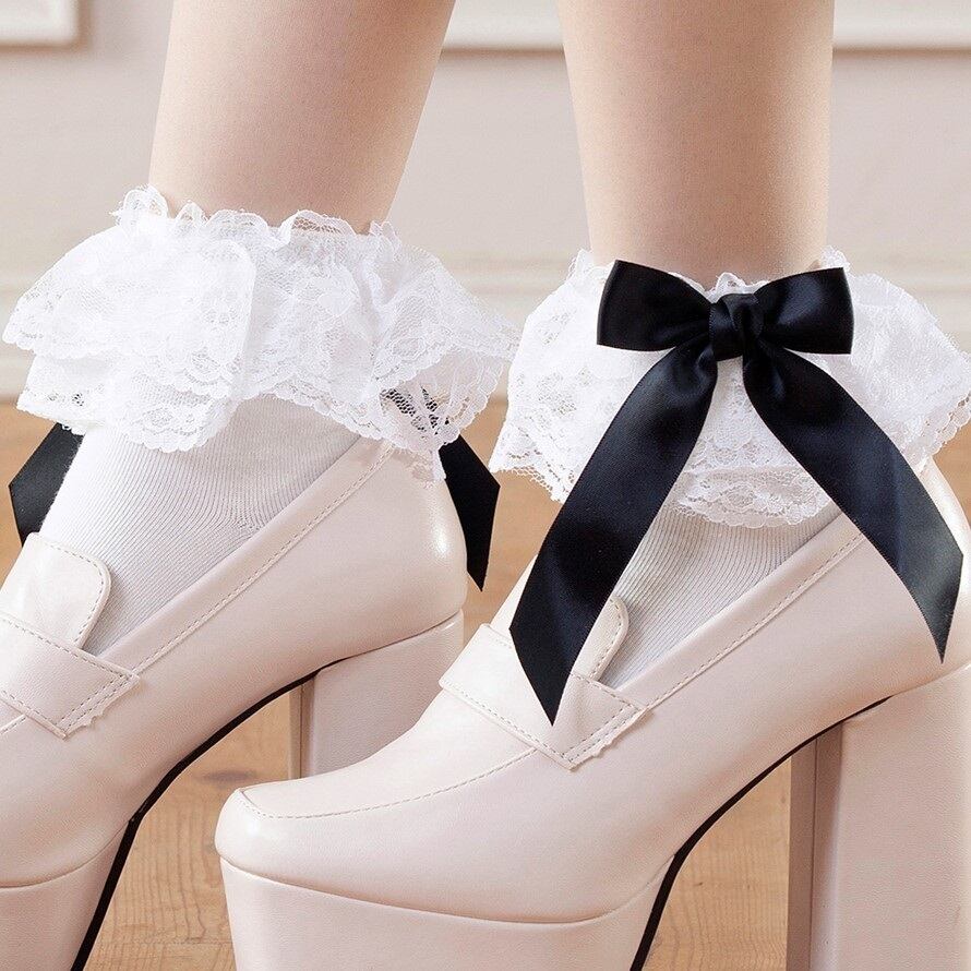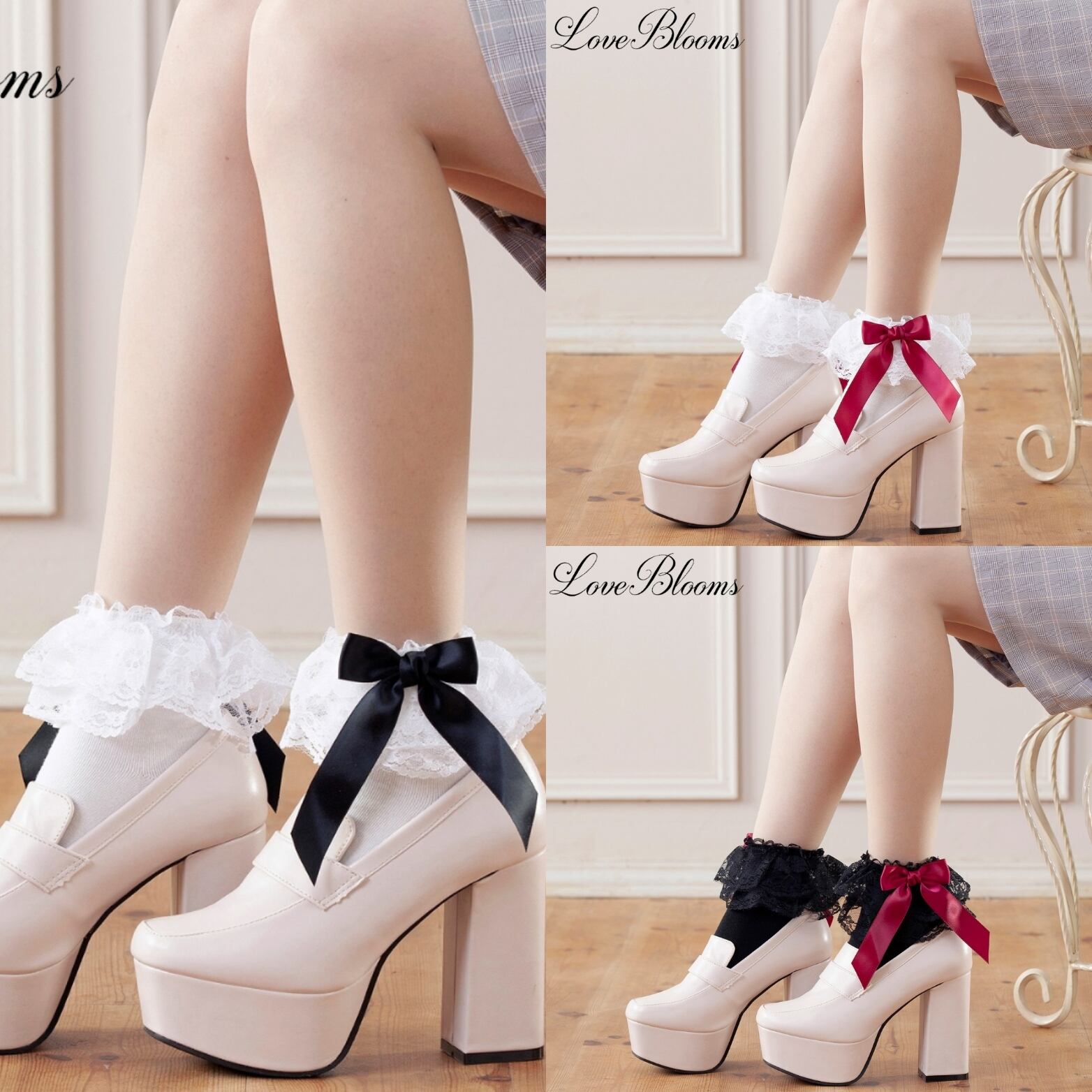 フリルレースにサテンリボンがついた存在感抜群でキュートさ満載のソックスです?