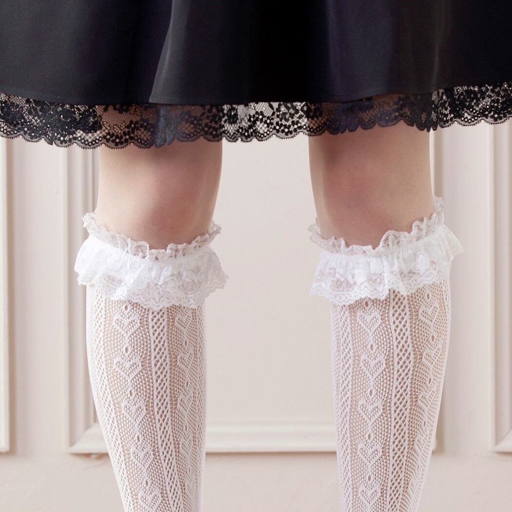 あなたの足元に、愛らしさと華やかさをプラスしてくれるハート柄フリルレースハイソックス。ぜひ、お気に入りのアイテムに加えてみてください。