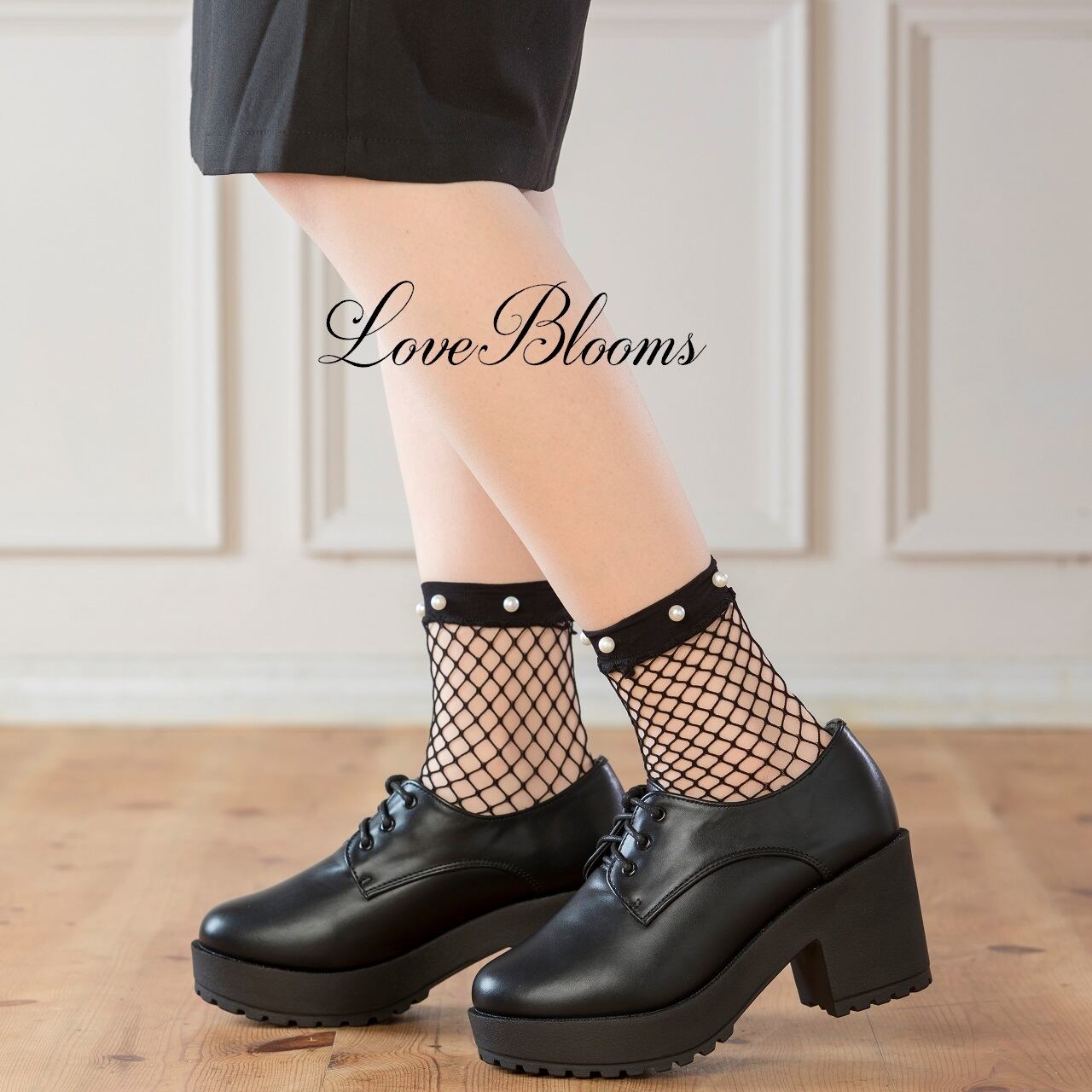 【送料無料】網ソックス パール付き クルーソックス 網タイツ ネットソックス フィッシュネット 網タイツ靴下 レディース 靴下 LB38004