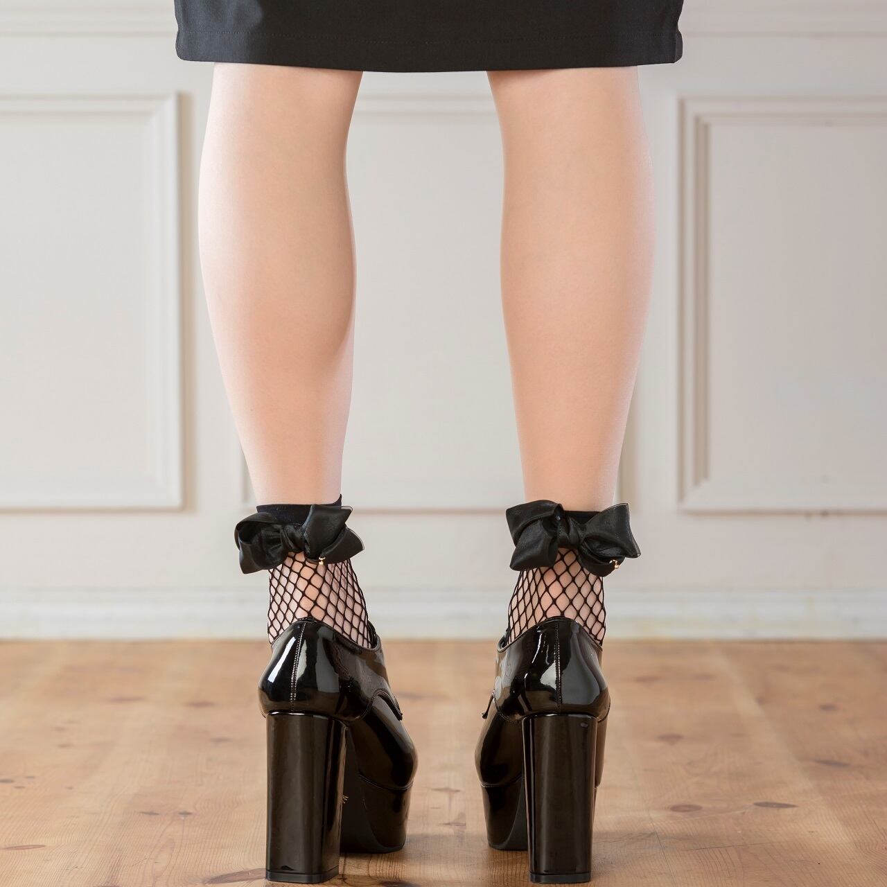 【送料無料】リボン 網ソックス 黒 ブラック レディース 靴下 量産型 地雷系 ゆめかわいい 姫系 ゴスロリ ロリータ 厚底 厚底シューズ LB18011