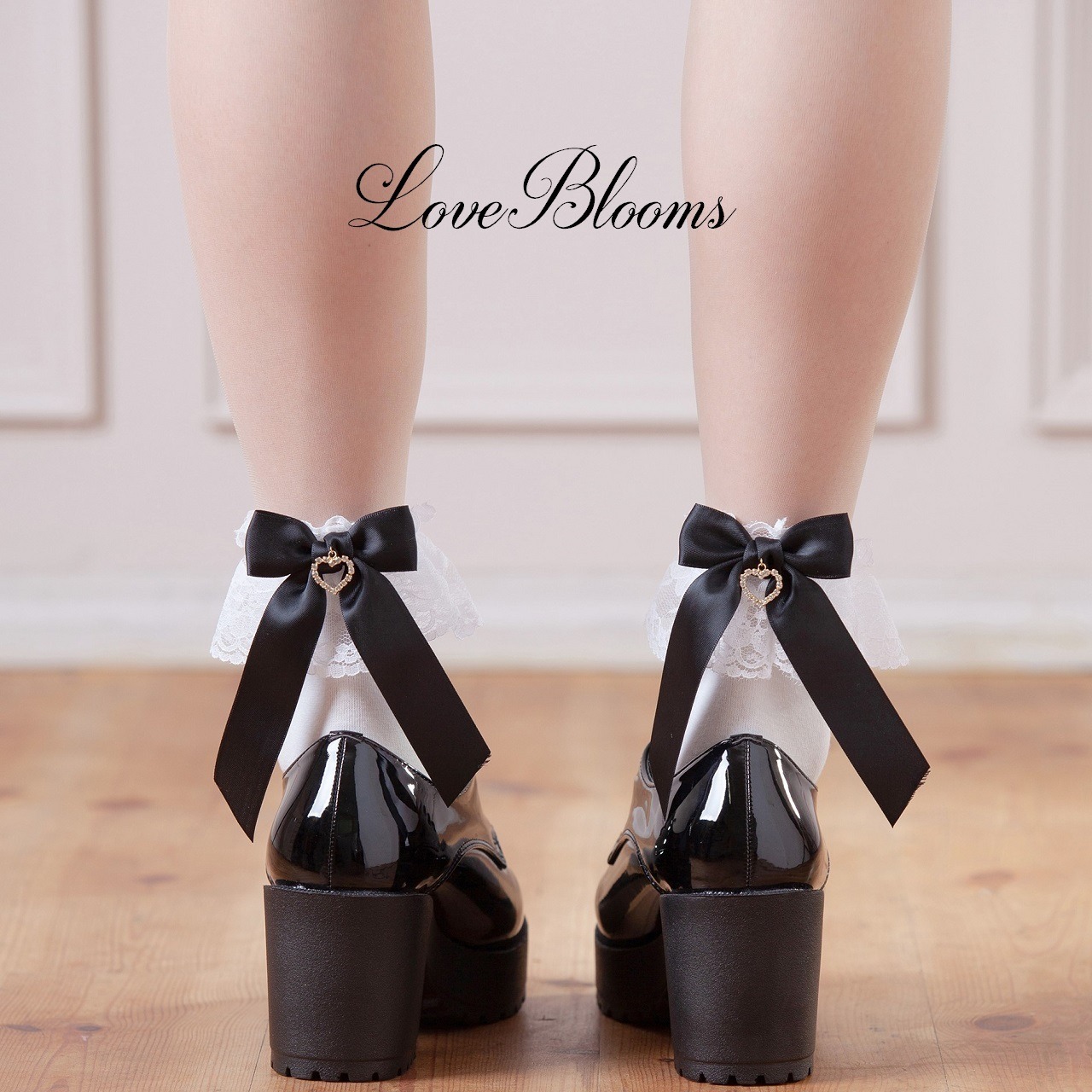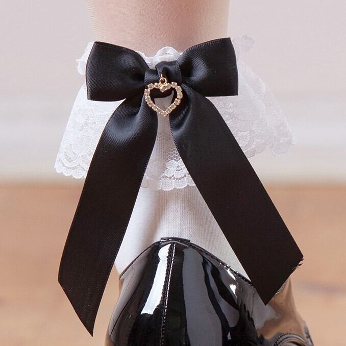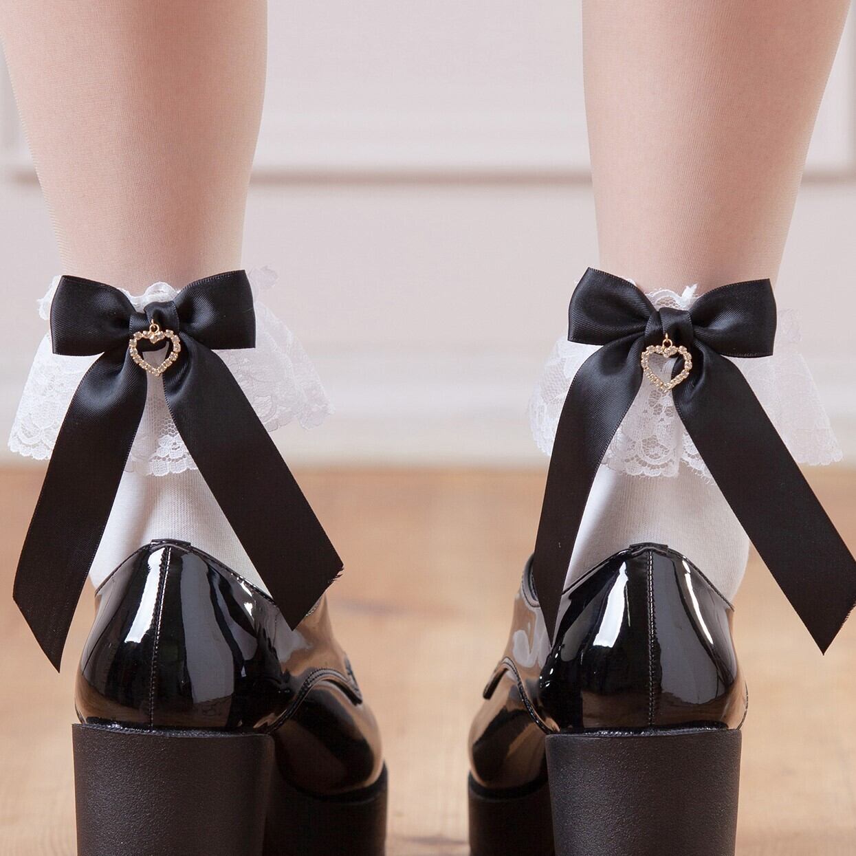 【送料無料】ハートチャームリボン付き フリルレースソックス レディース靴下 量産型 地雷系 ゆめかわいい ロリータ LB17096