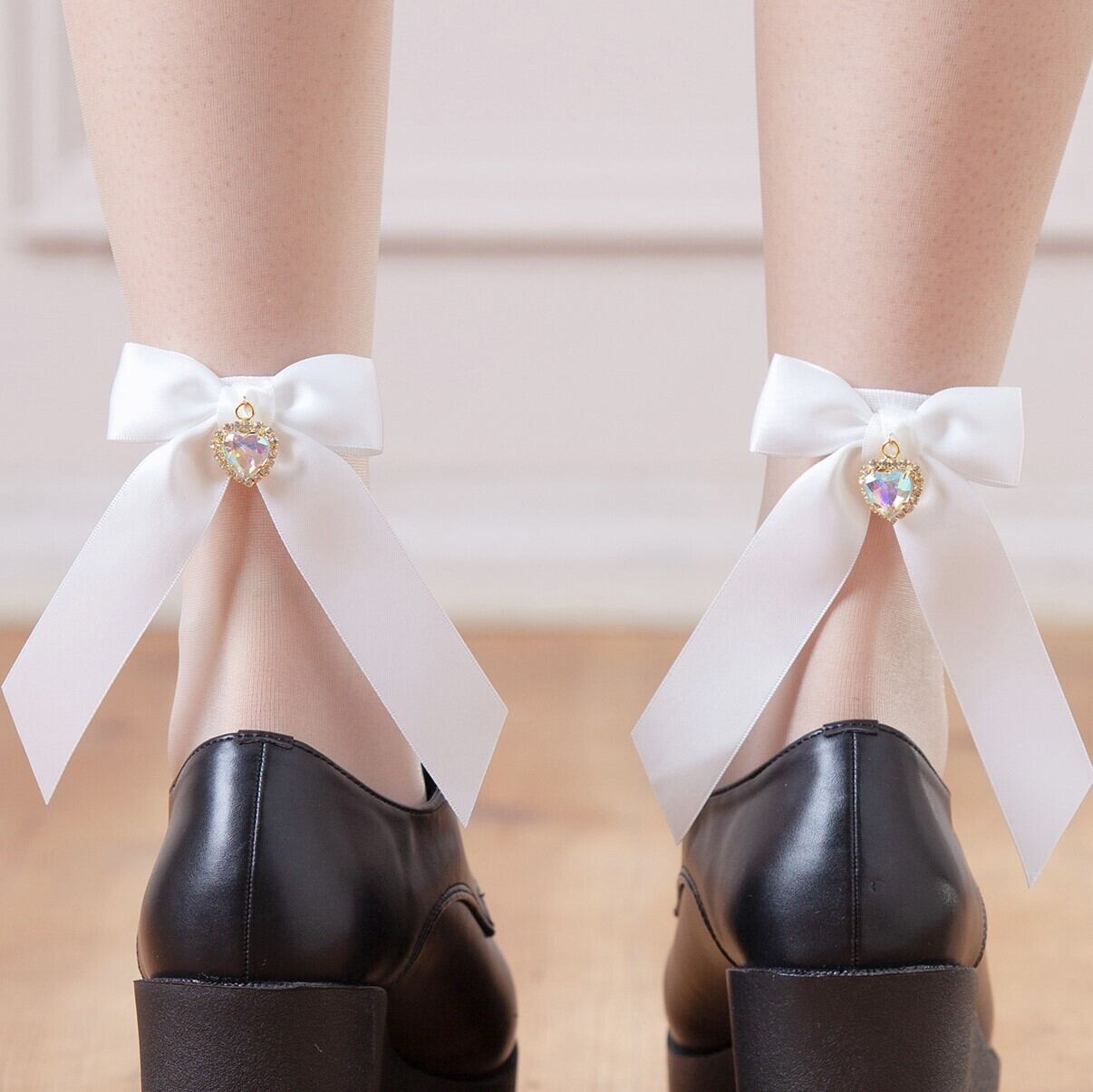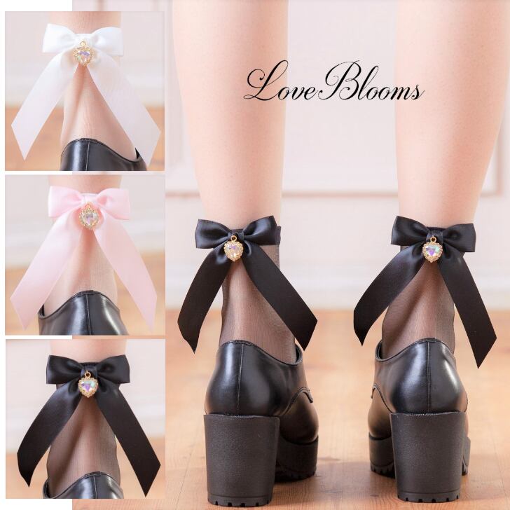 【送料無料】キラキラハートビジュー サテンリボン付き シースルーソックス(日本製)レディース靴下 量産型 地雷系 ゆめかわいい ロリータ LB17106