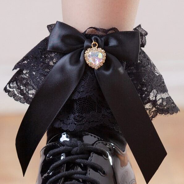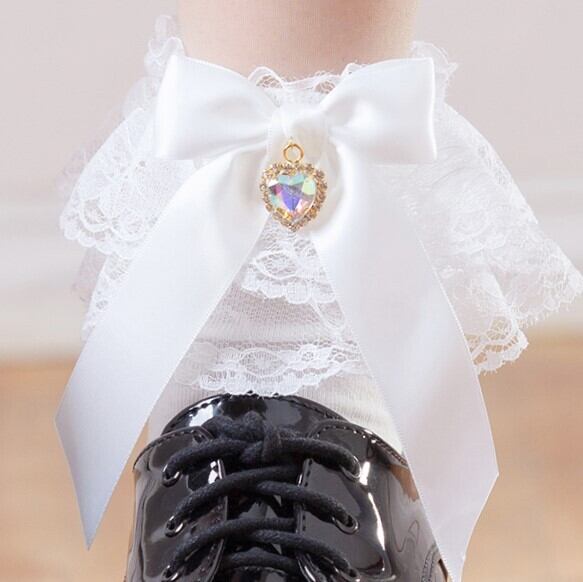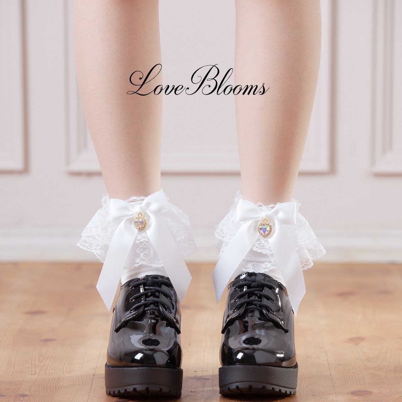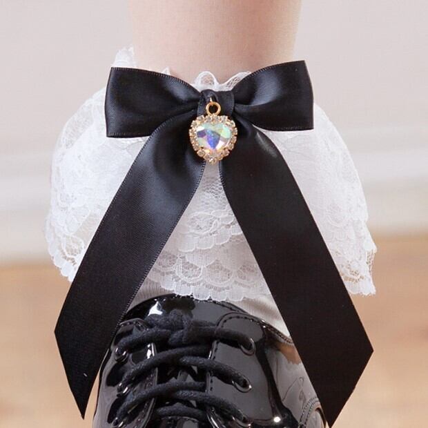 【送料無料】キラキラハートビジュー サテンリボン付き フリルレースソックス レディース靴下 量産型 地雷系 ゆめかわいい ロリータ LB17108