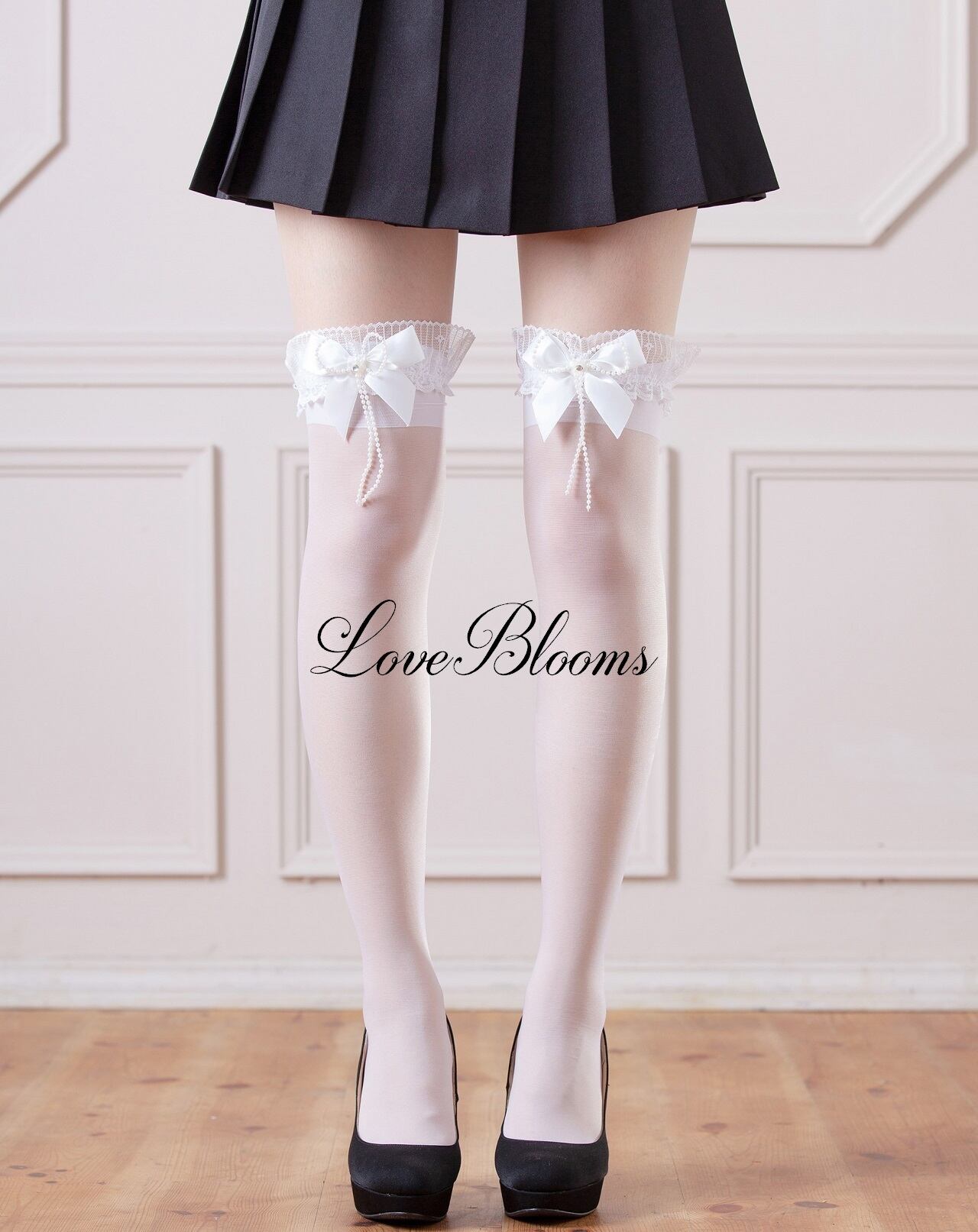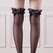 【送料無料】リボン シアーニーハイ ガーター ストッキング ニーハイソックス 黒 白 レディース 靴下 地雷系 コスプレ LB32101