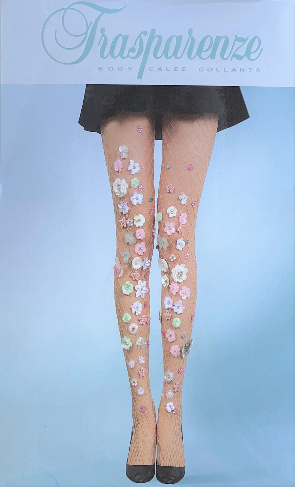 【Mermaid tights】デザインタイツ ベージュ カラフル花・飾り付き網タイツ ストッキング レディースタイツ LB36617