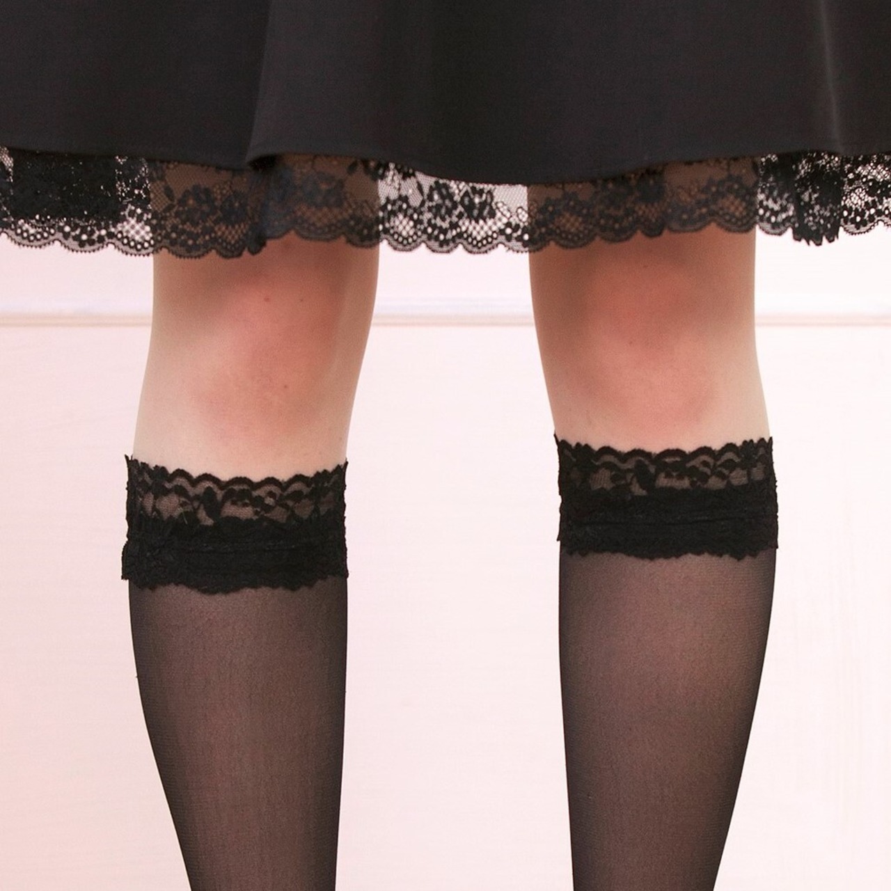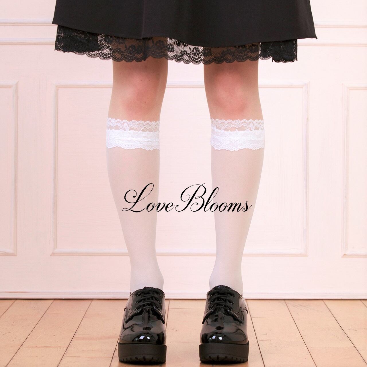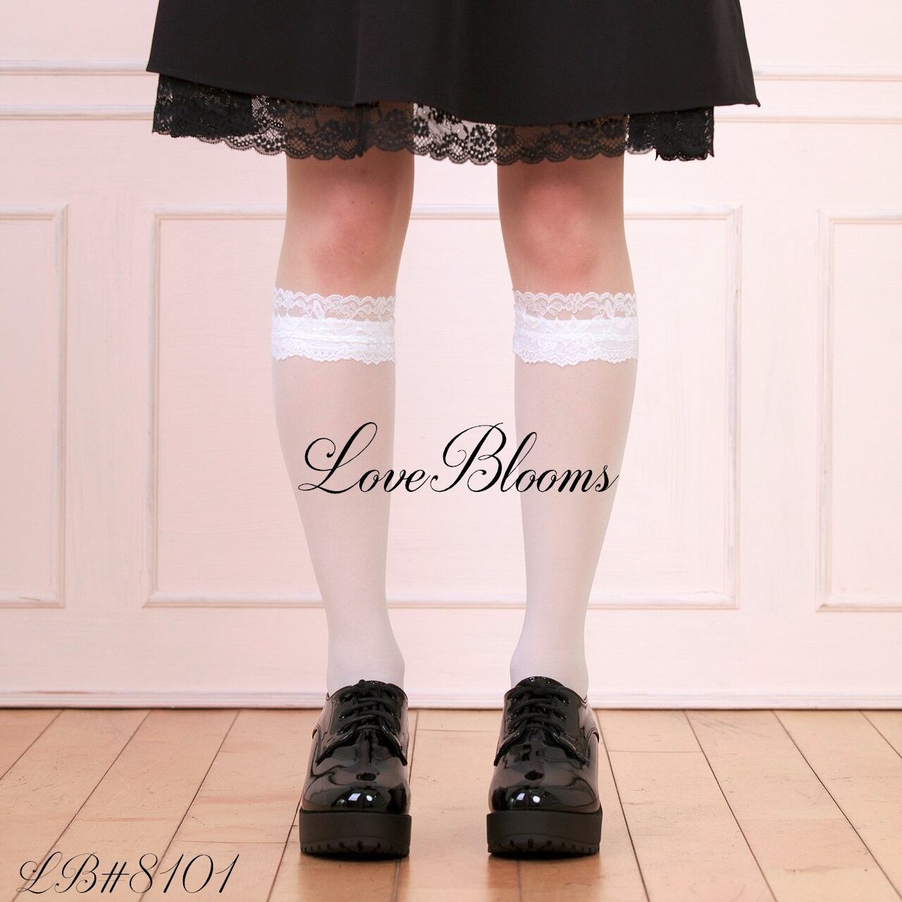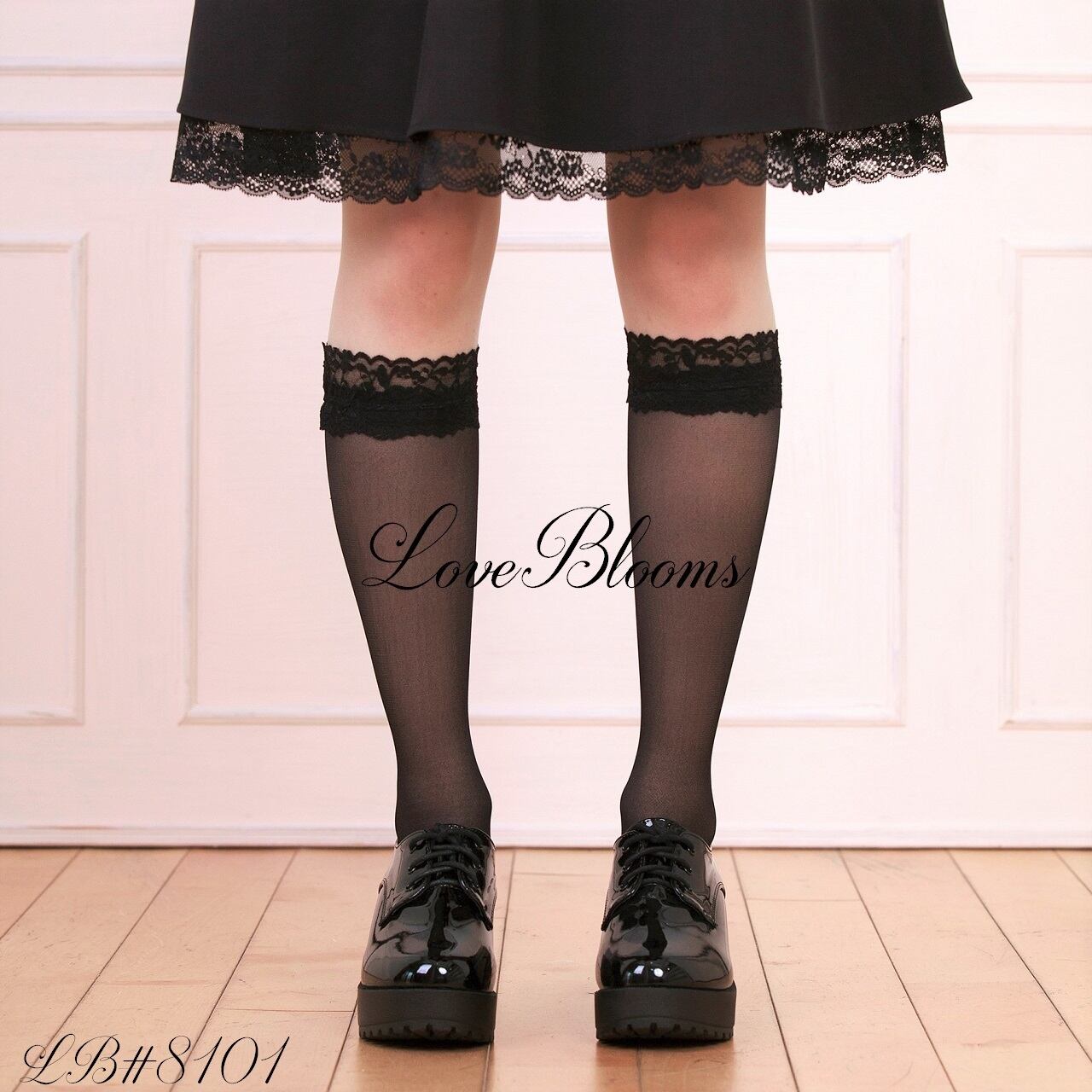 【送料無料】レース付き シアーハイソックス ストッキング 黒 白 レディース靴下 量産型 地雷系 LB38101