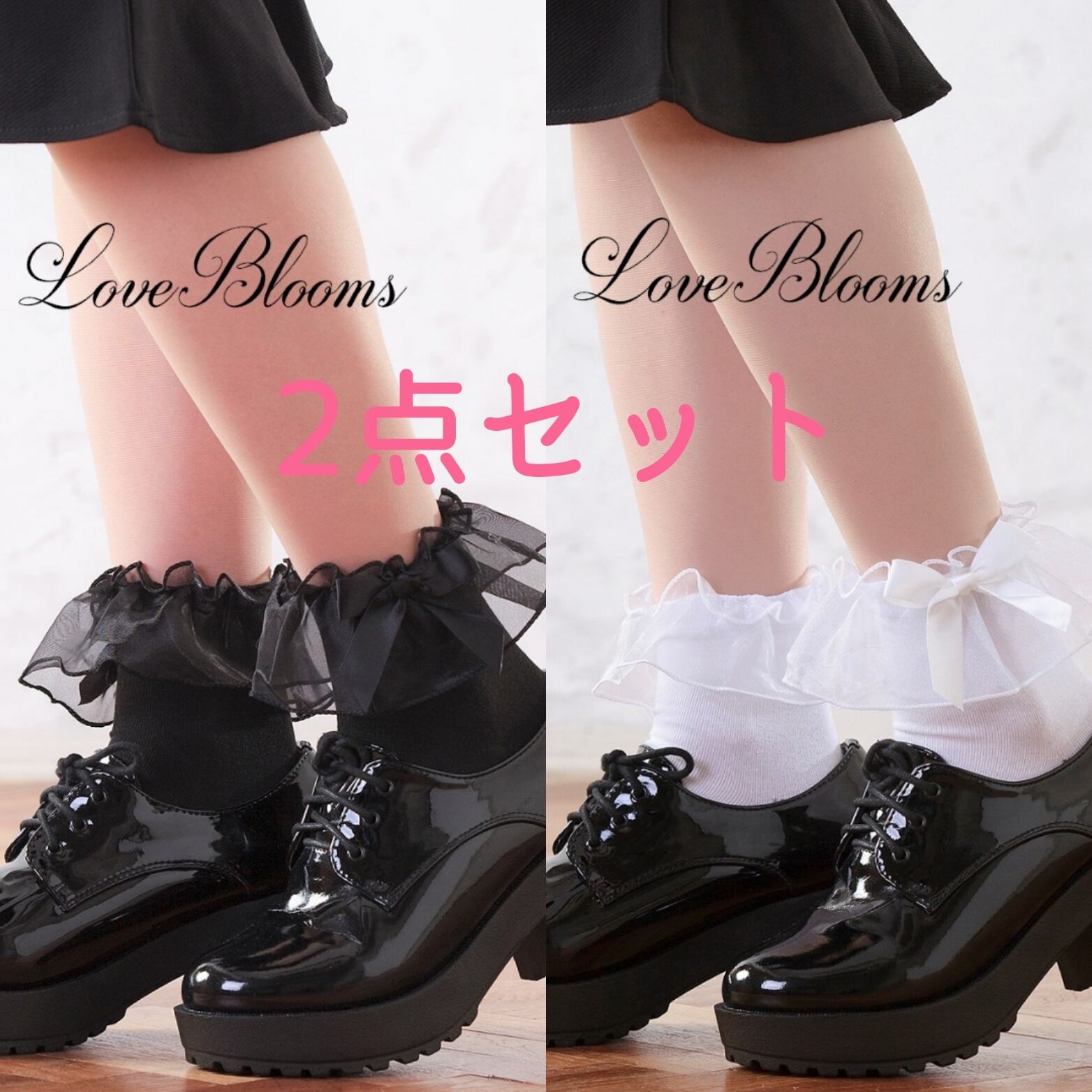 【送料無料】2点セット リボン付き フリルチュール ソックス 黒 白 レディース靴下 量産型 地雷系 LB32913-1