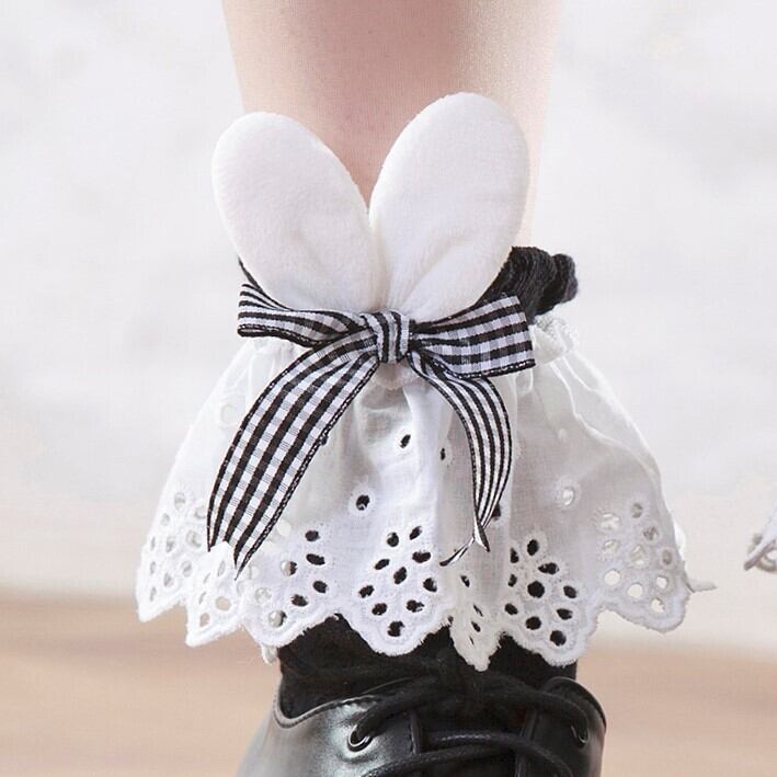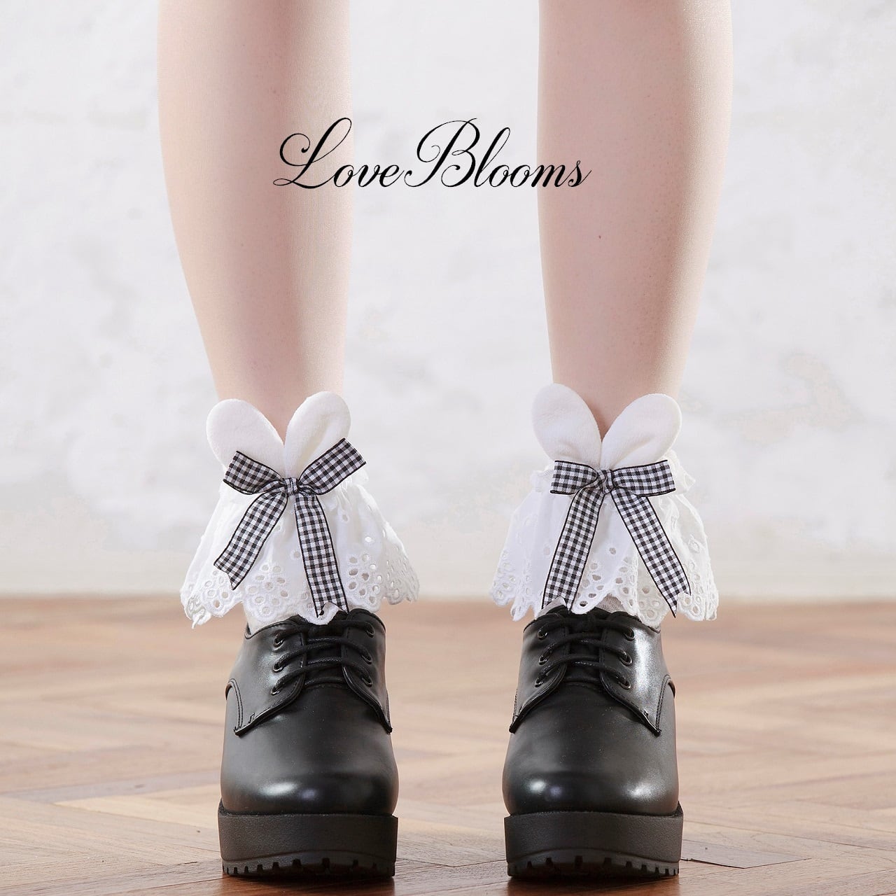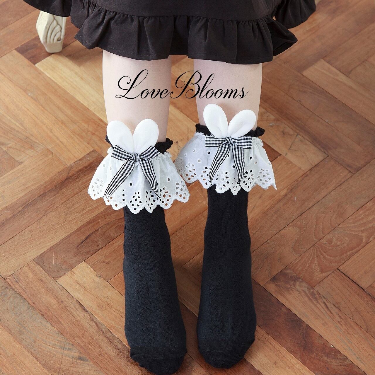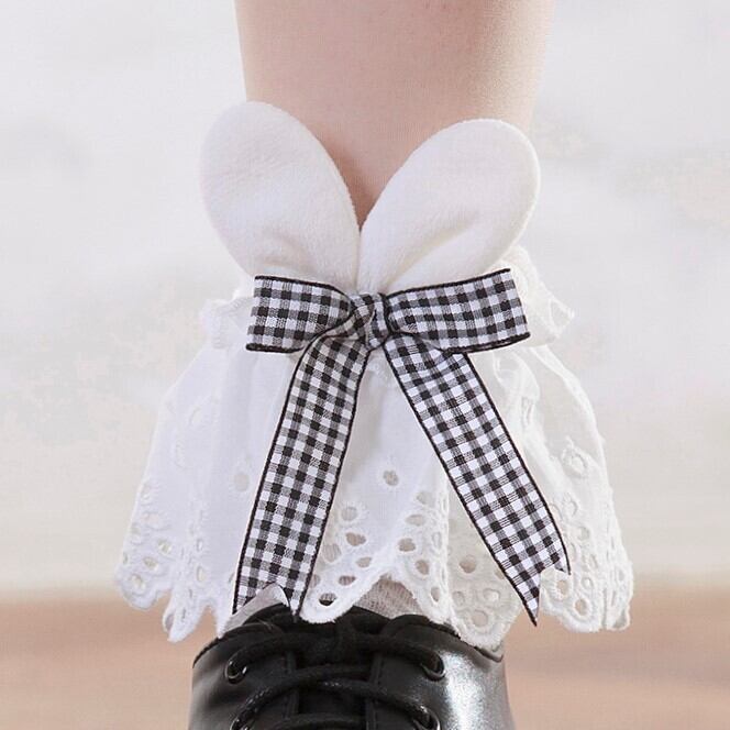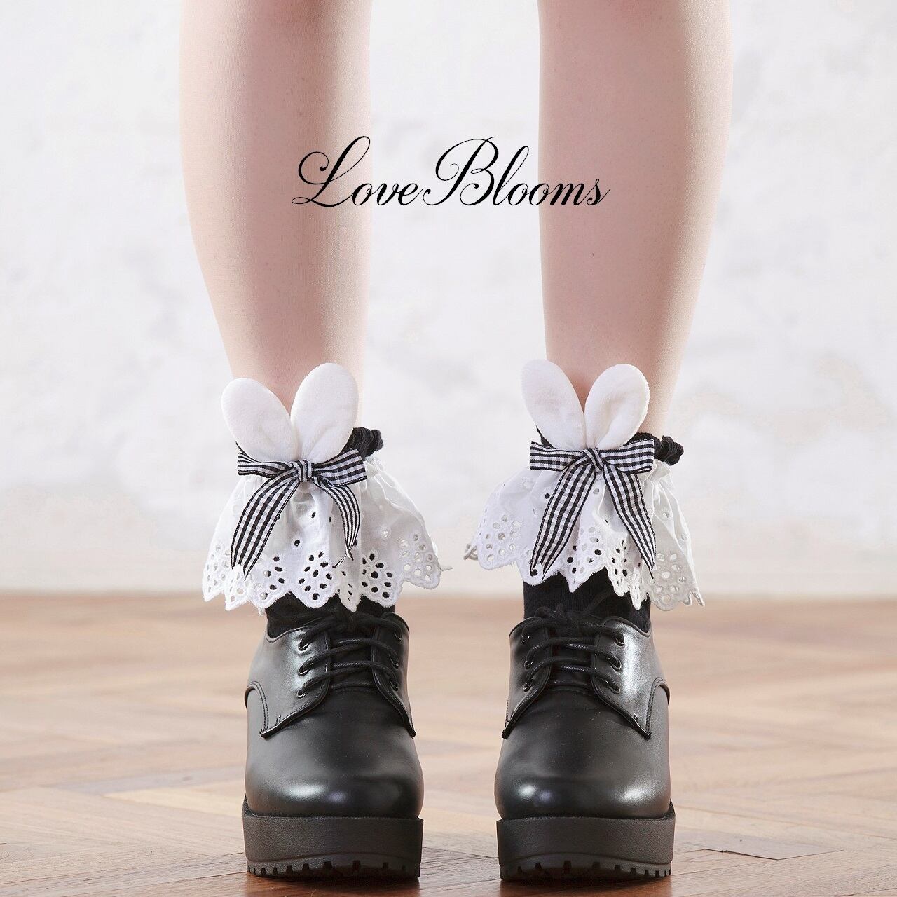 【送料無料】うさ耳リボン フリルレース ソックス 黒 白 レディース靴下 量産型 地雷系 ロリータ LB32905