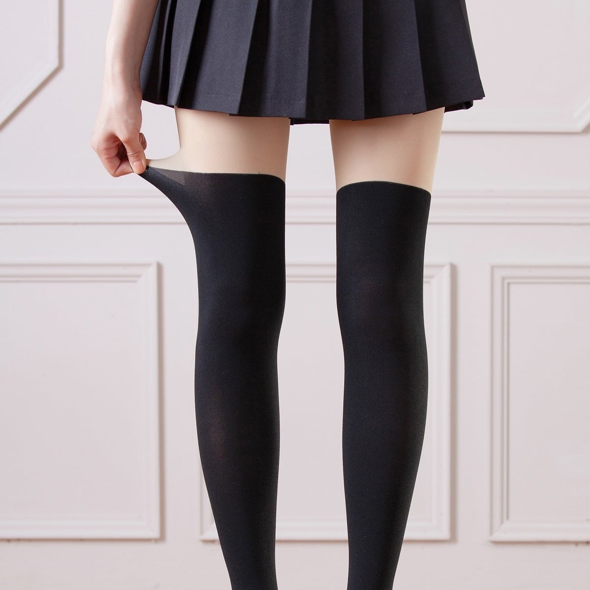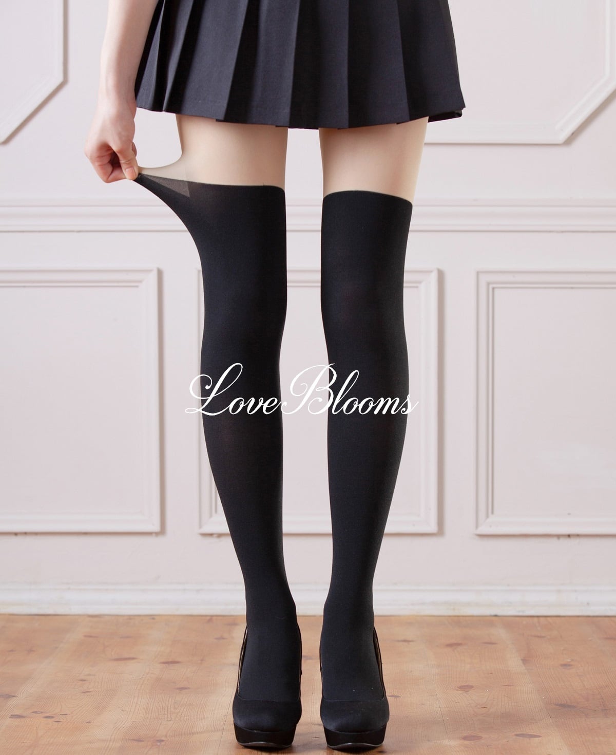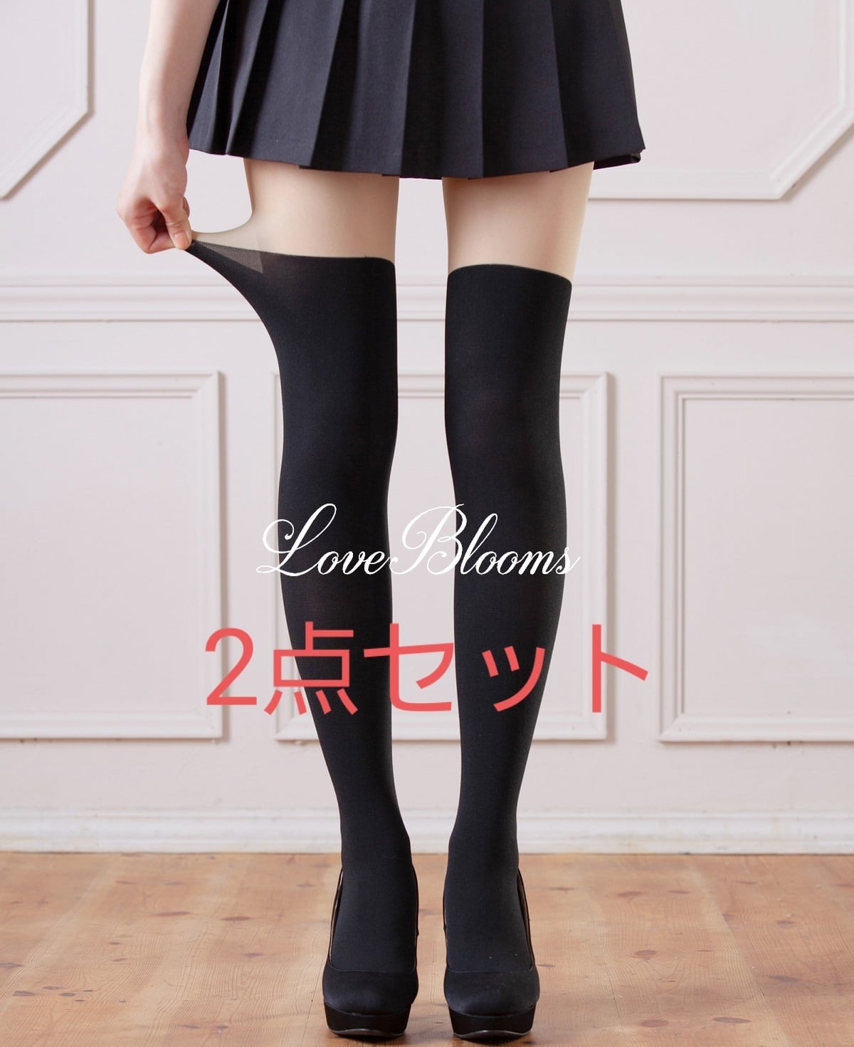 【送料無料】2点セット フェイクニーハイ ストッキング 黒 ブラック レディース タイツ 美脚 ニーハイ 量産型 地雷系 LB39901-2