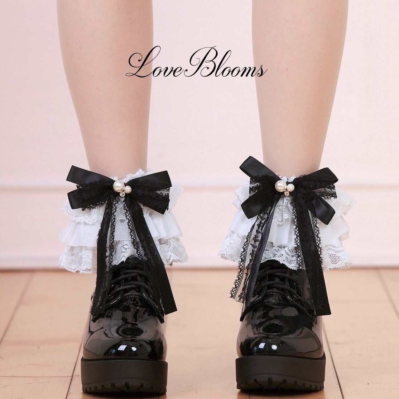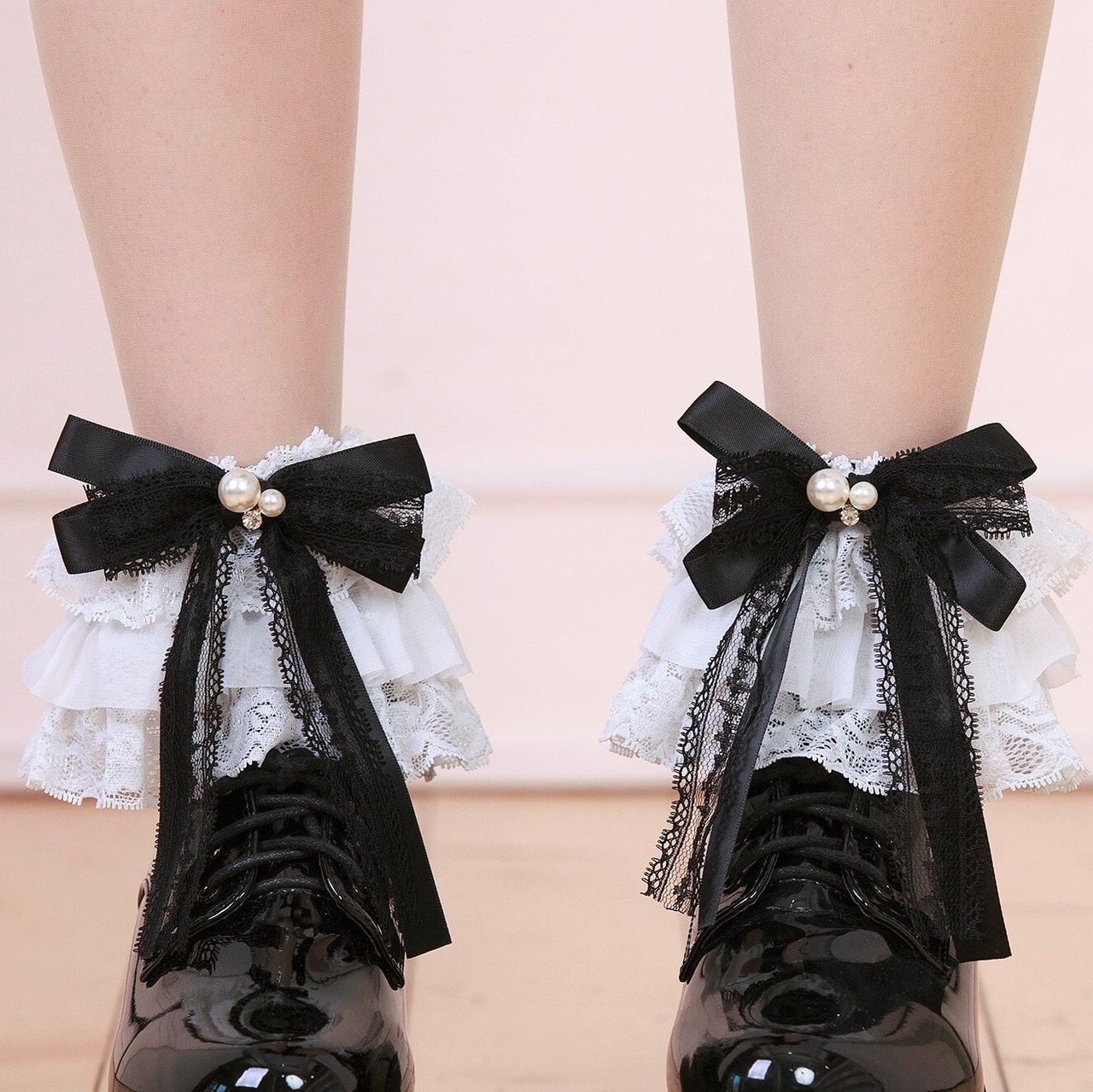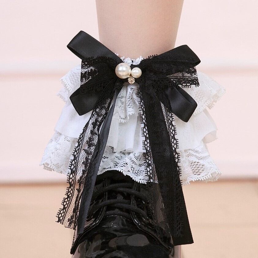 【送料無料】リボン 3段 フリルレース ソックス 黒 白 レディース 靴下 量産型 地雷系 ロリータ LB12927