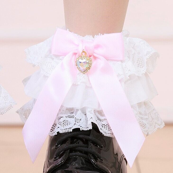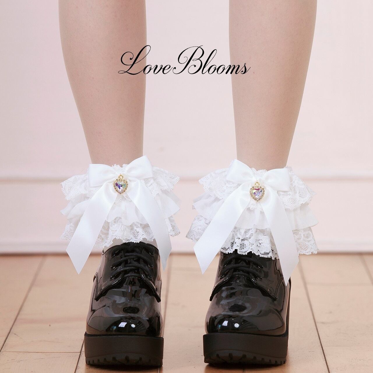 【送料無料】ハート ビジュー リボン 3段 フリルレース ソックス 黒 白 レディース 靴下 量産型 地雷系 ロリータ LB12929
