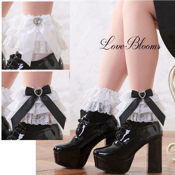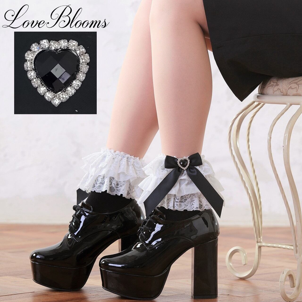 【送料無料】リボン 3段 フリルレース ソックス 黒 白 レディース 靴下 量産型 地雷系 ロリータ LB12934