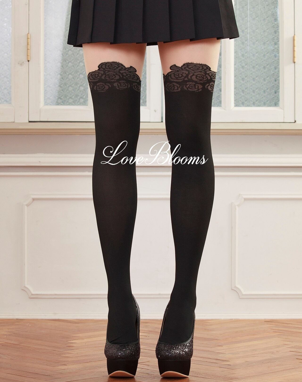 【送料無料】フェイクニーハイ ストッキング 黒 ブラック バラ柄 レディース タイツ 美脚 ニーハイ 量産型 地雷系 LB39906