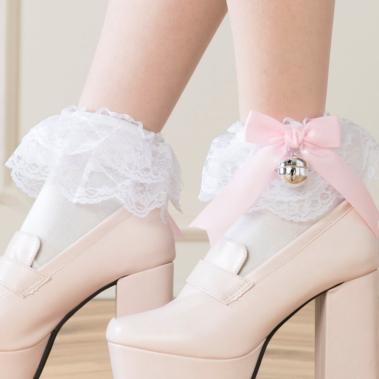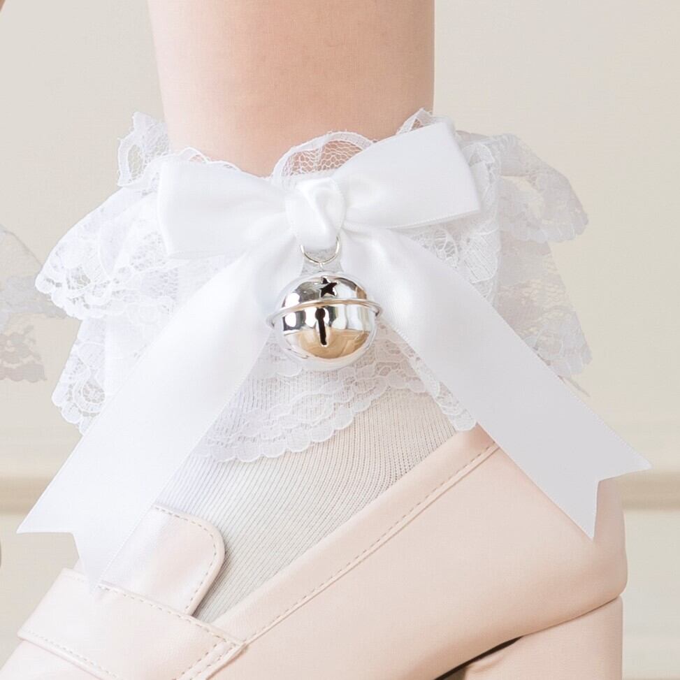 足元を彩るフリルレースには、鈴が付いたリボンがアクセントになり、足元から愛らしさを演出します!街を歩けば注目の的になること間違いなしです。