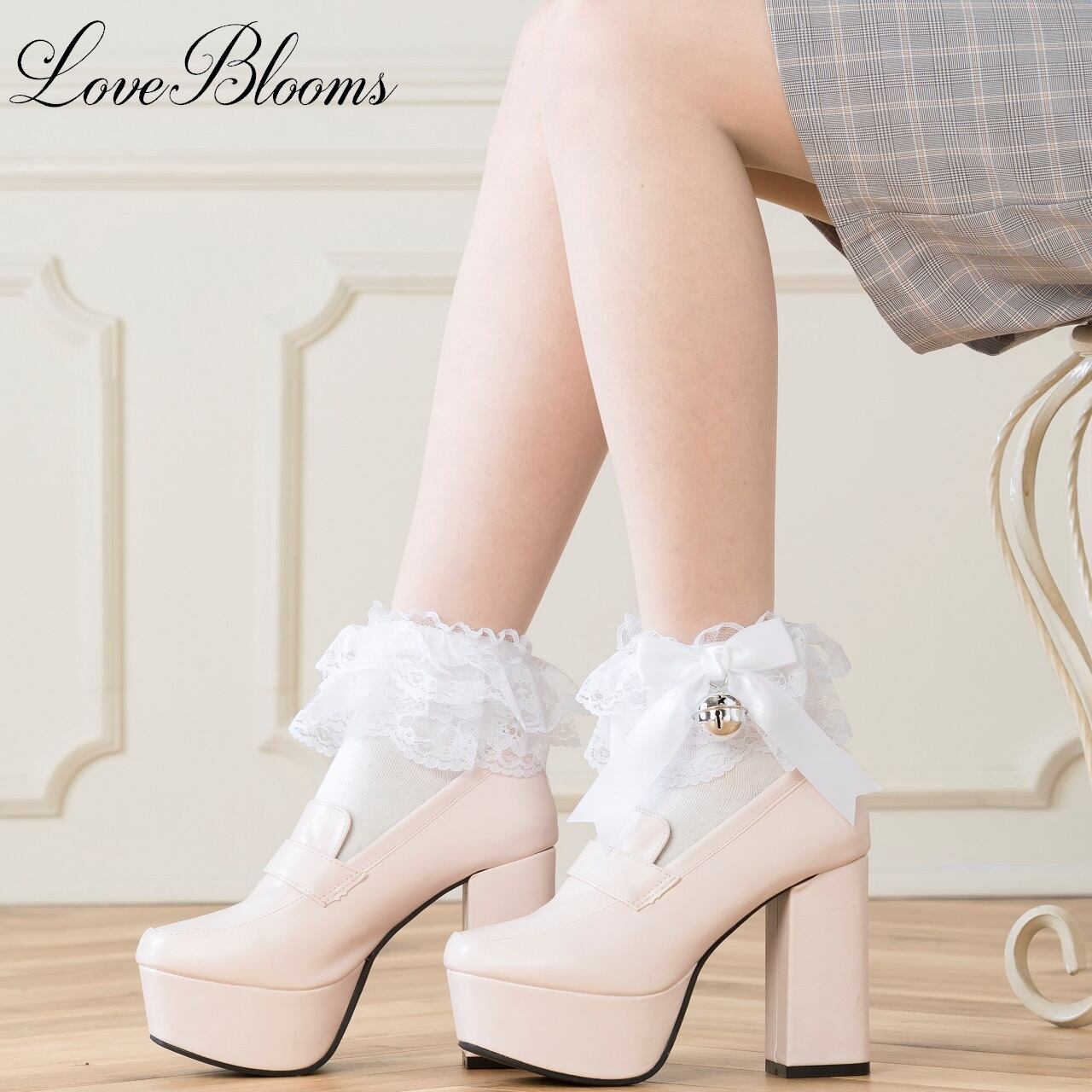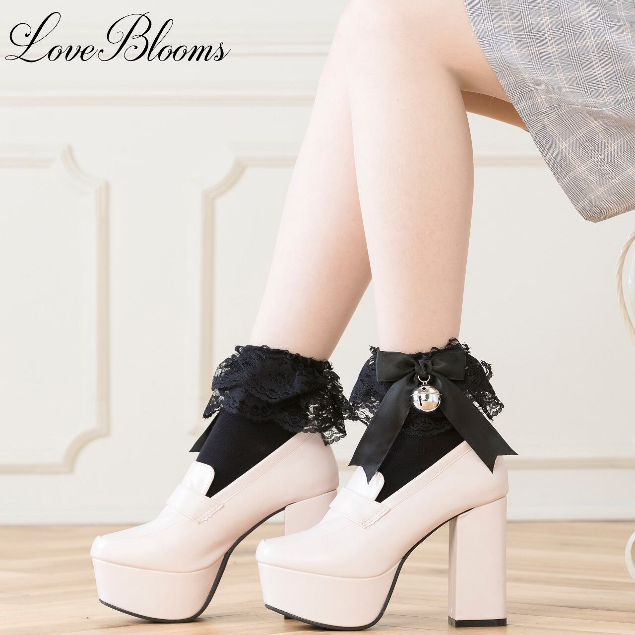 【送料無料】鈴 リボン フリルレース ソックス 黒 白 レディース 靴下 量産型 地雷系 ロリータ LB17119