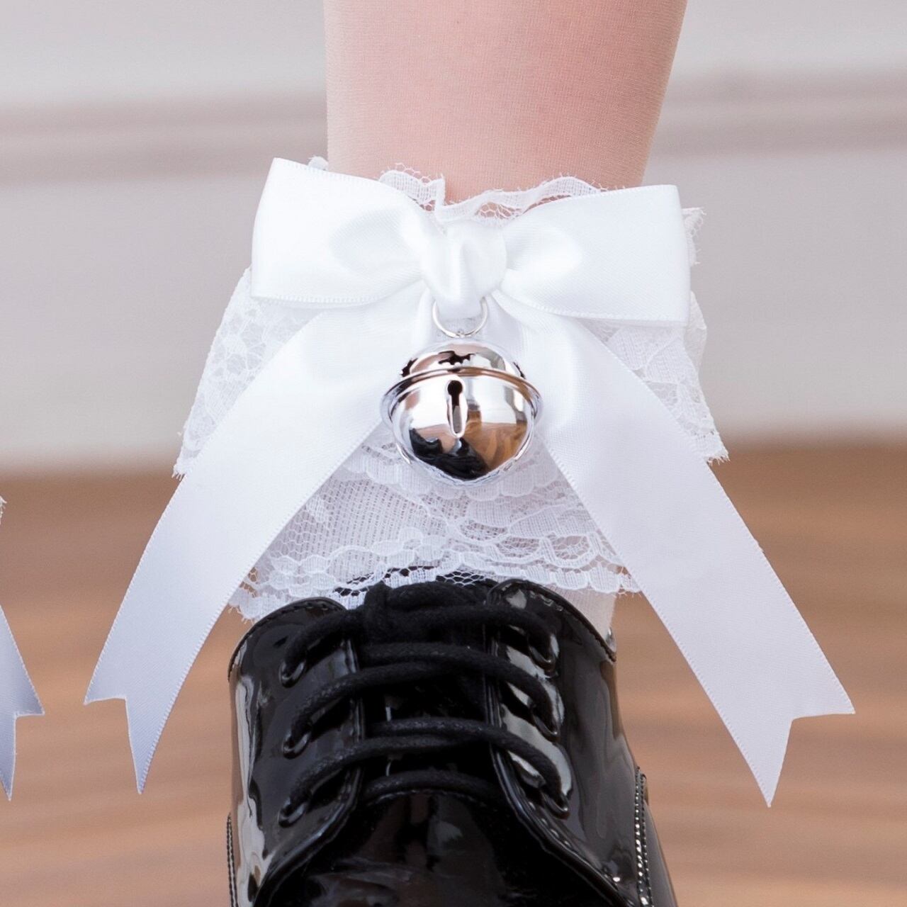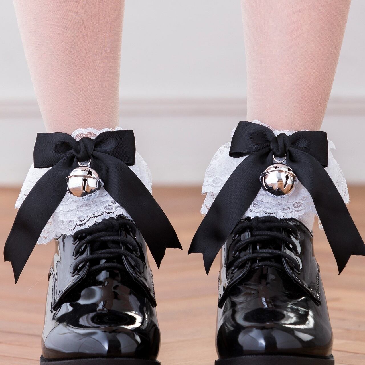 足元を彩るフリルレースには、鈴が付いたリボンがアクセントになり、足元から愛らしさを演出します!街を歩けば注目の的になること間違いなしです。