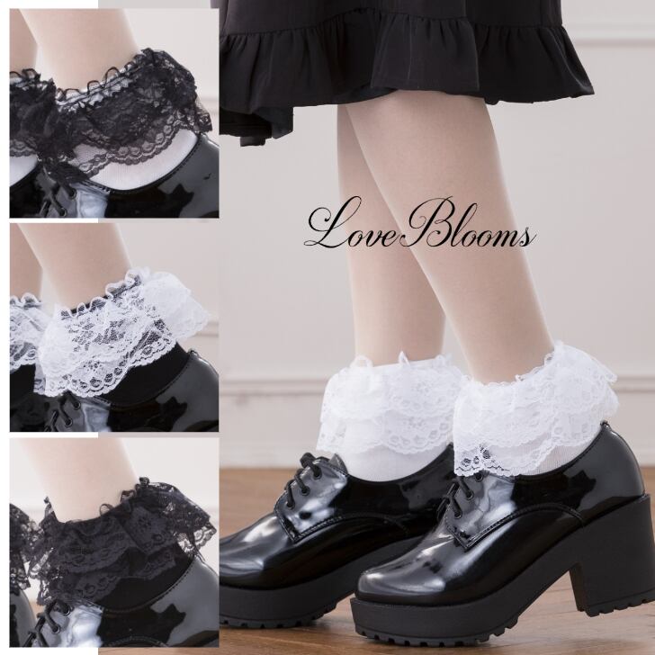 【送料無料】フリルレース ソックス 黒 白 レディース 靴下 量産型 地雷系 ロリータ LB23017