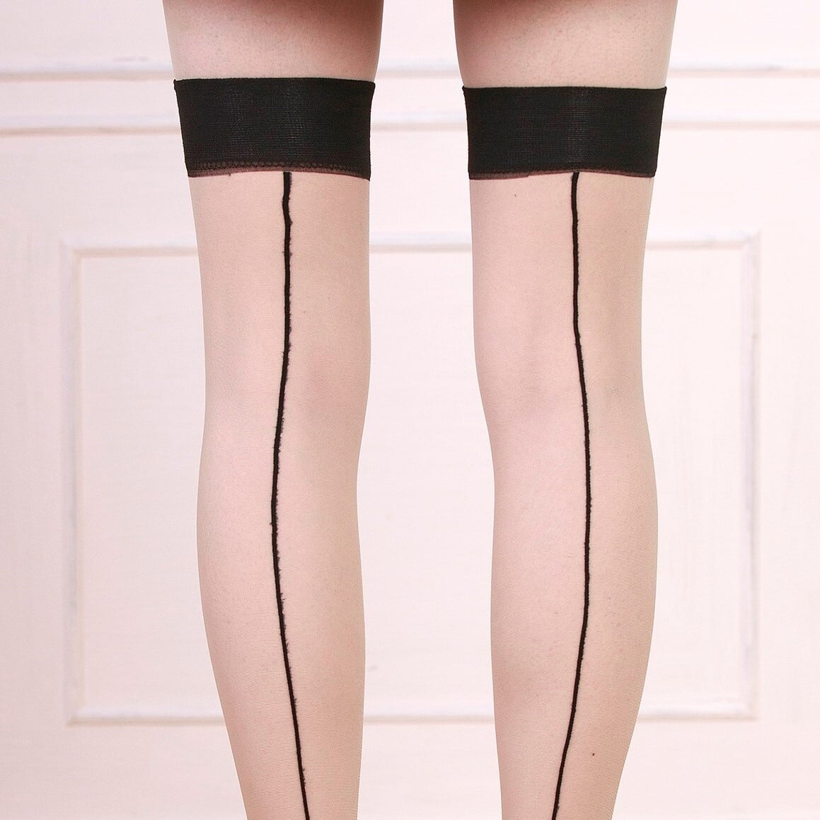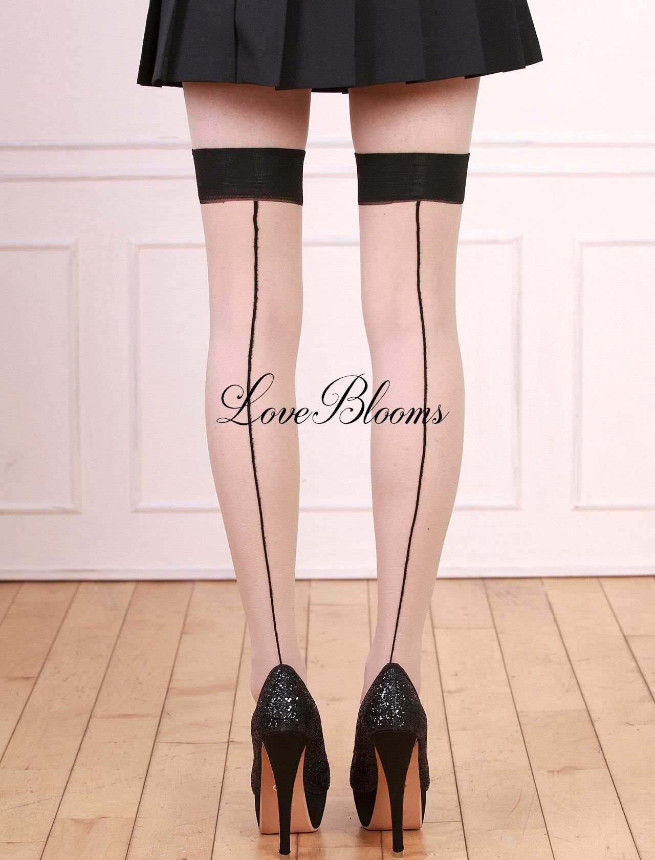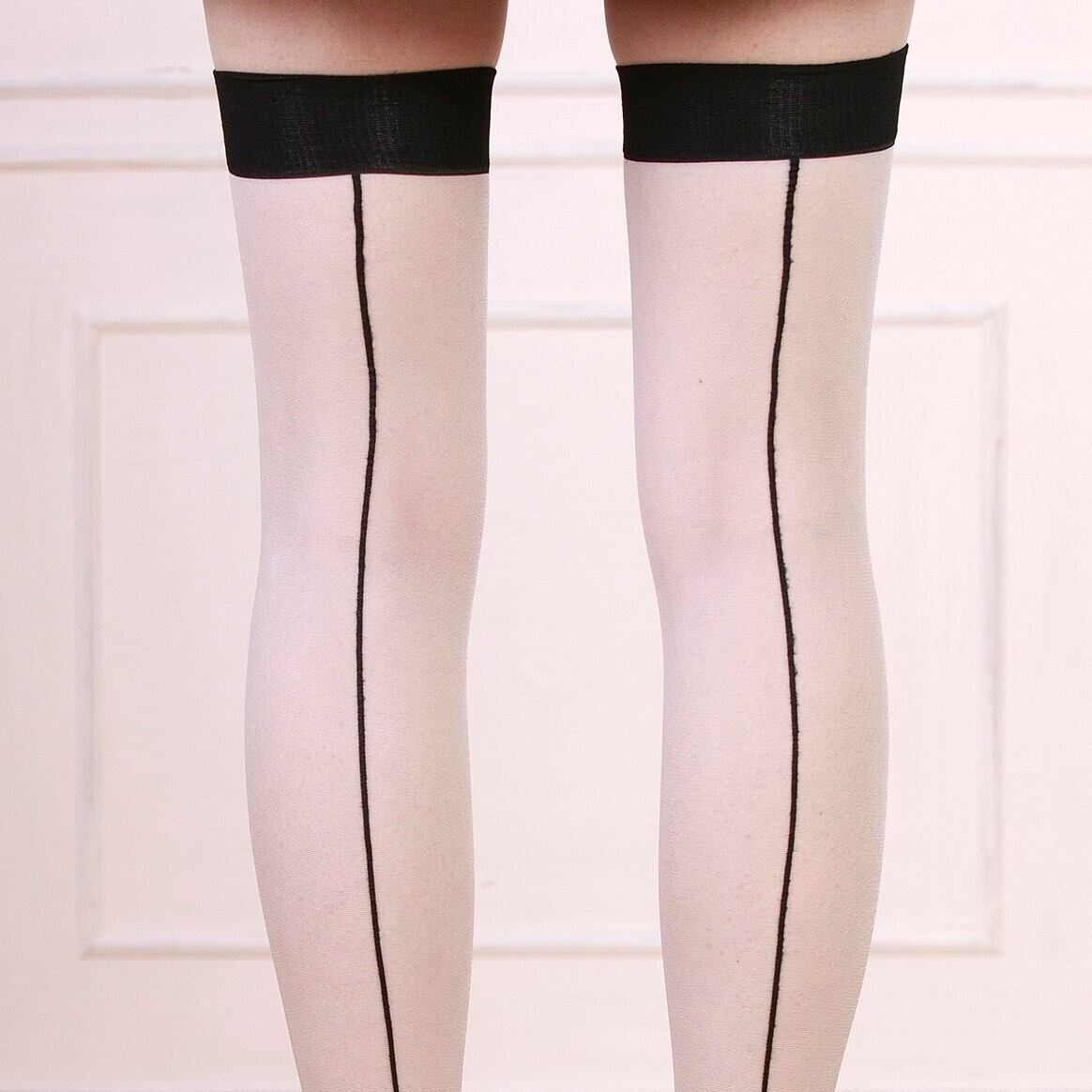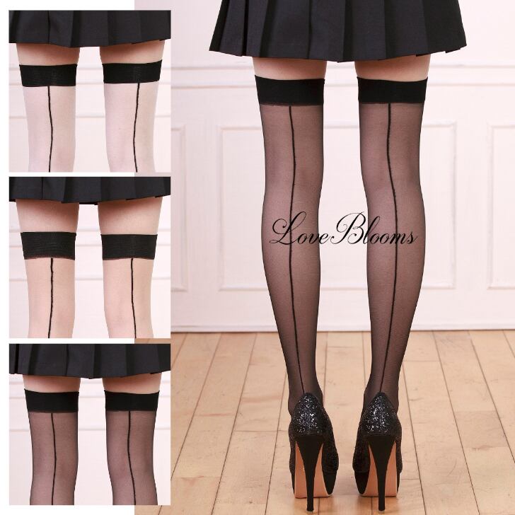 【送料無料】バックシーム シアーニーハイ ストッキング 黒 白 ベージュ ガーター ニーハイソックス レディース 靴下地雷系 コスプレ LB32056