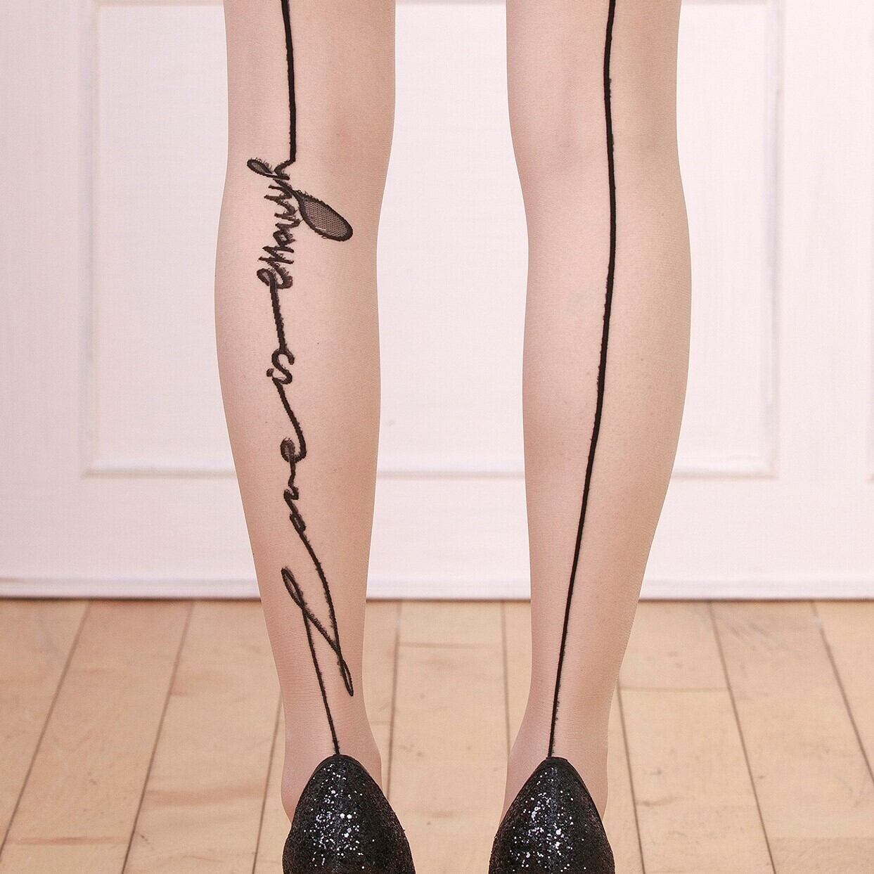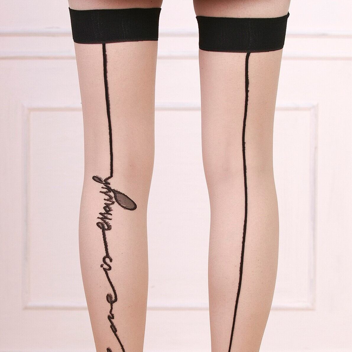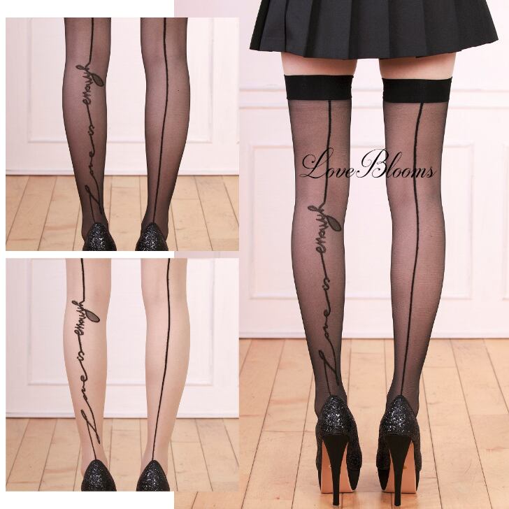 【送料無料】バックシーム 英文字 シアーニーハイストッキング ニーハイソックス 黒 ベージュ レディース 靴下 地雷系 コスプレ LB32133