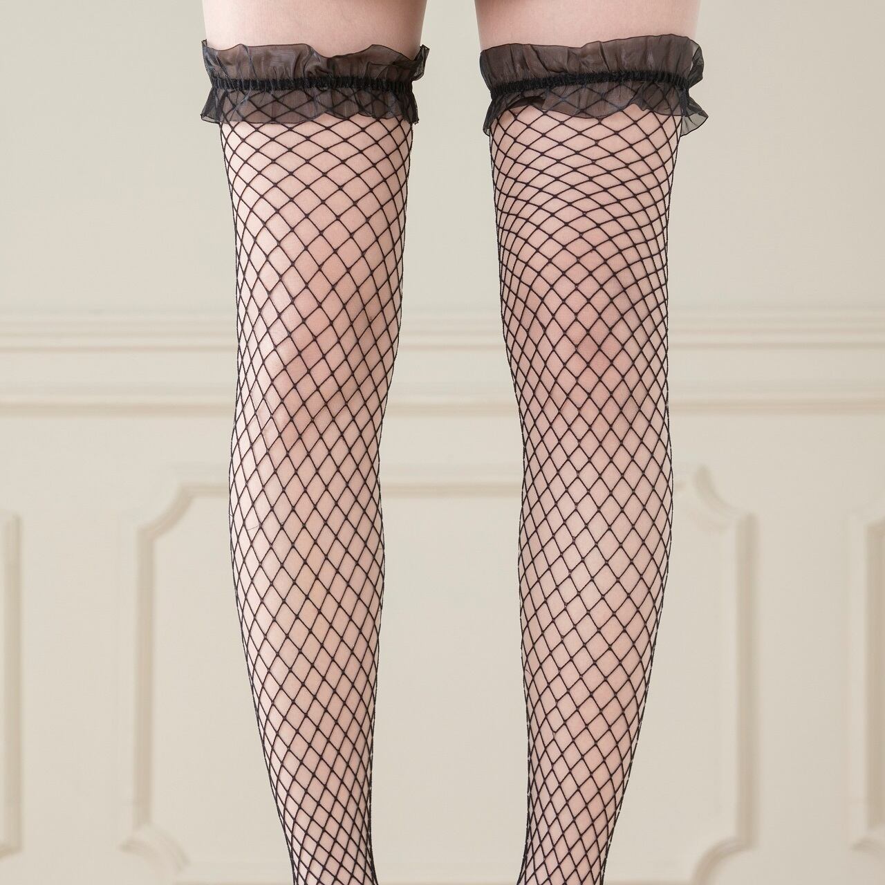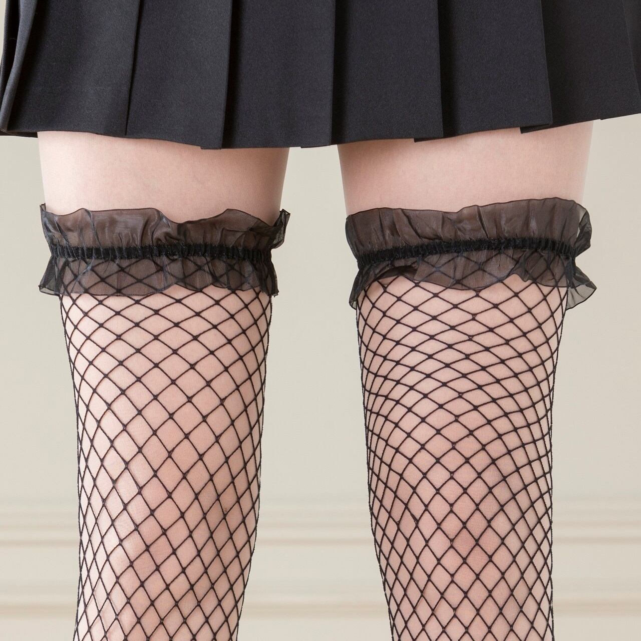 【送料無料】トップフリル ガーター 網ニーハイストッキング 網タイツ ニーハイソックス 黒 白 レディース 靴下 地雷系 コスプレ LB32946