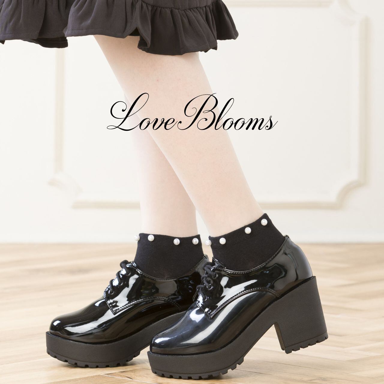 【送料無料】パール付き ソックス 黒 白 無地 レディース 靴下 量産型 地雷系 ロリータ LB32958