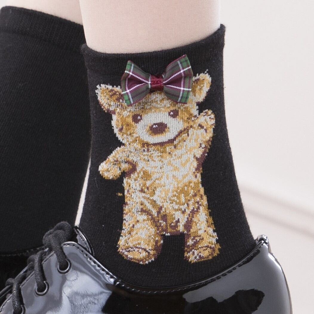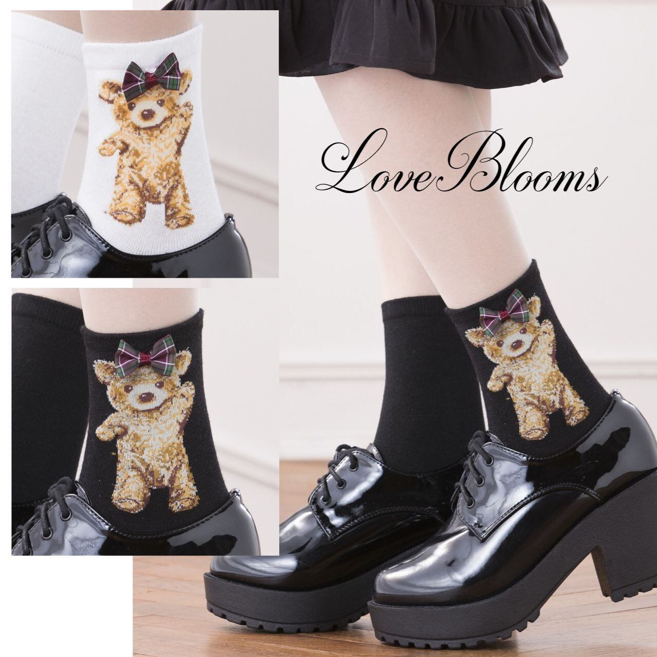 【送料無料】リボン くま柄 ソックス 黒 白 レディース 靴下 量産型 地雷系 ロリータ LB32966
