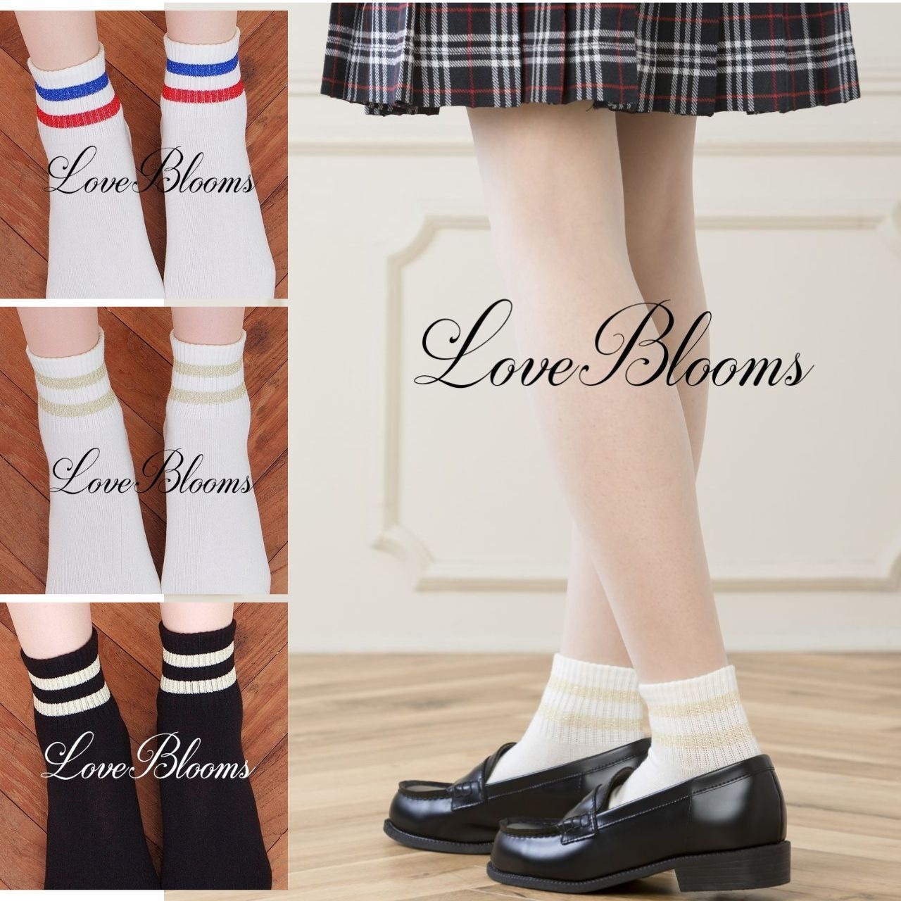 【送料無料】ライン入り 無地リブ ソックス スクール 紺 黒 白 ネイビー アイボリー 10cm丈 日本製 レディース 靴下 LB20393-3